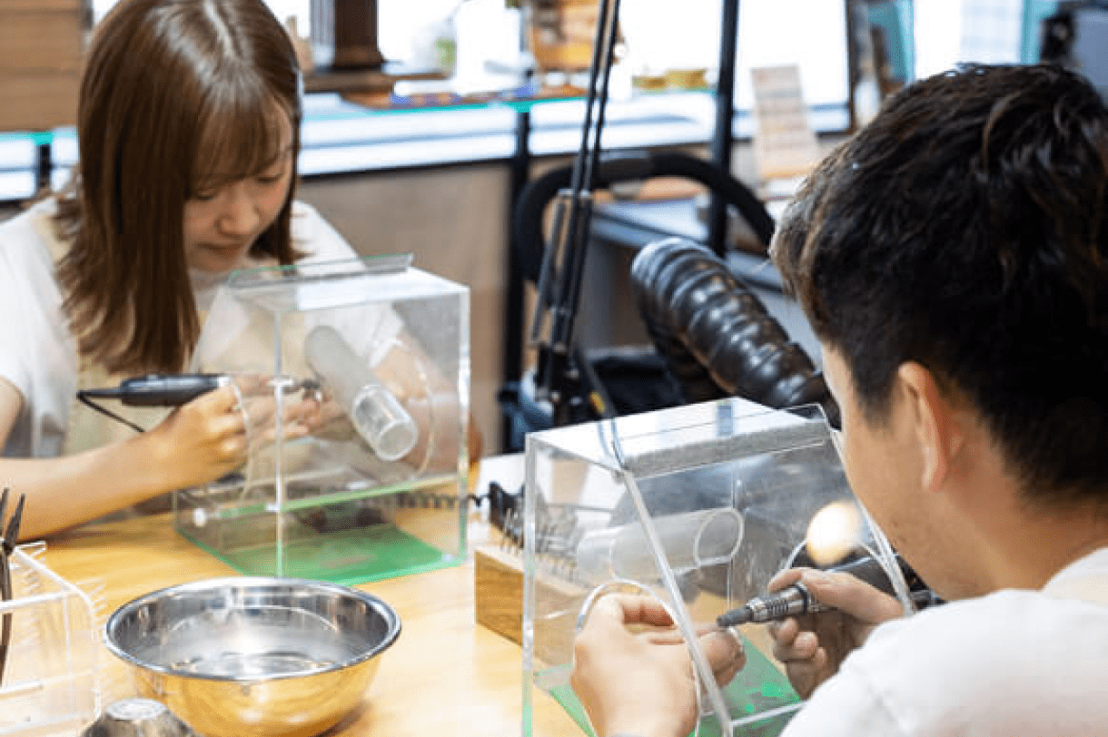 自分たちの手で特別な絆をカタチに、大切なものだからご納得いただけるまでスタッフが指輪作りをサポートします。