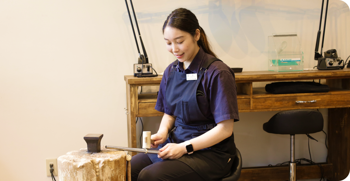 特に印象に残っているのは、予算を超えるデザインに悩まれながらも、購入を予定していた「AirPods Pro」の購入資金を指輪制作に充ててくださったお客様です。デザインを気に入っていただけたことはもちろん、私の提案が心を動かせたことへの歓びや達成感、そして『必ず素敵な指輪を』という強い使命感を感じた、大切な経験となりました。