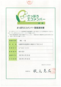 工房Smith札幌を運営しております、株式会社一宝は札幌市の「さっぽろエコメンバー」に登録されました。