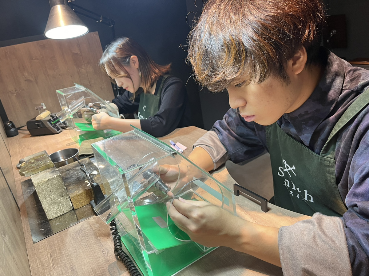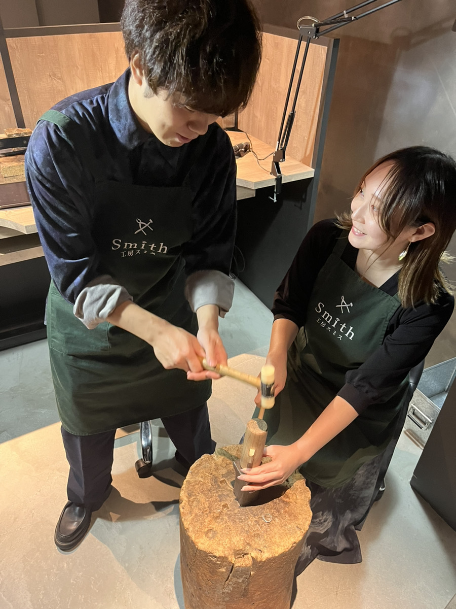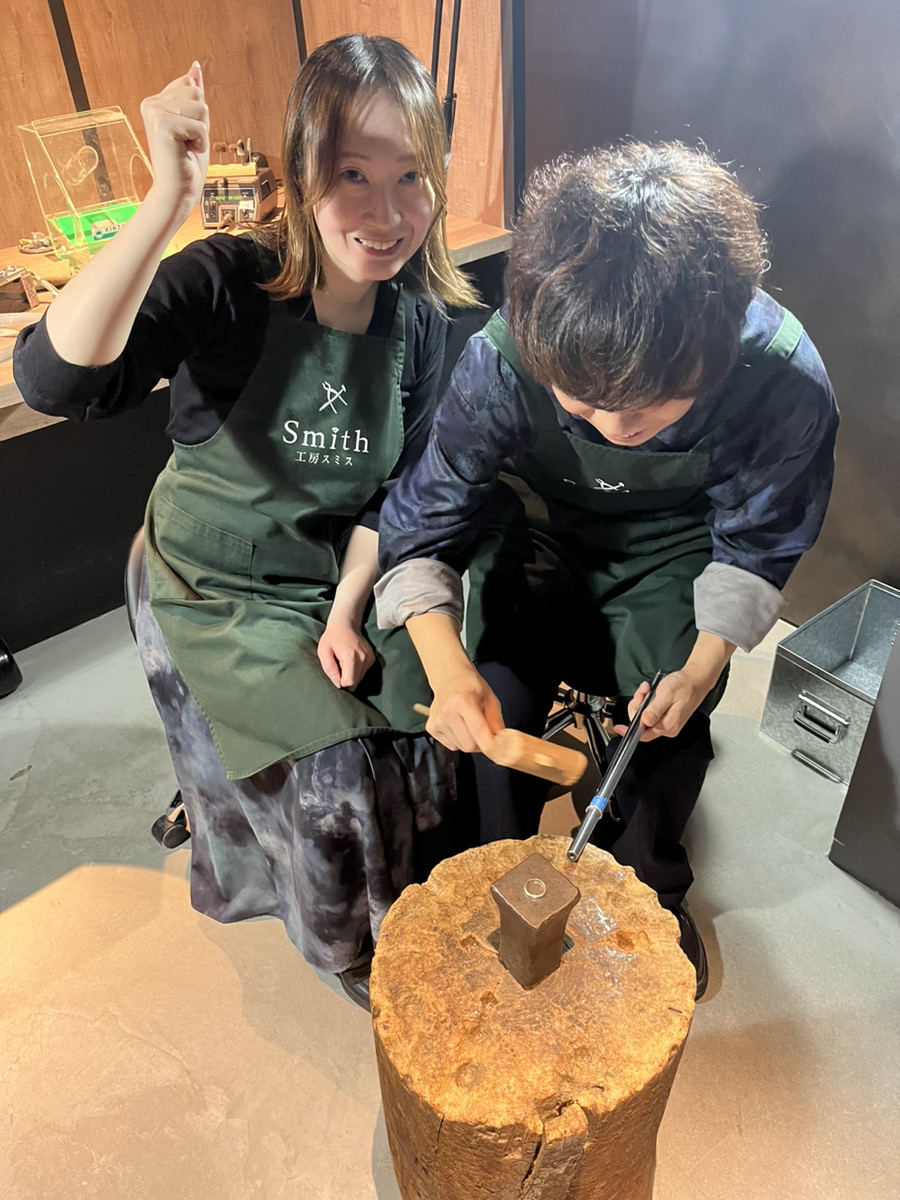 お二人とも想いを込めてリングの表面を磨いたり、叩いたり、とても楽しそうにご制作に取り組んでくださいました事を