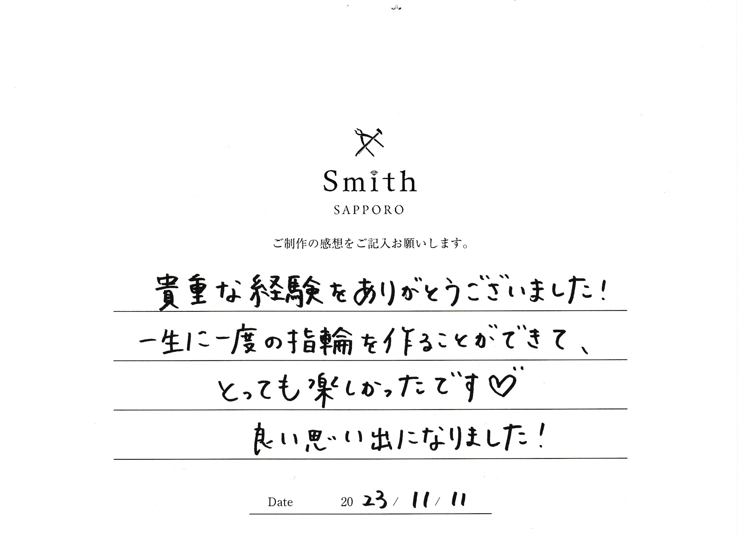 この度は工房smith札幌店にお越しいただきまして誠にありがとうございました。