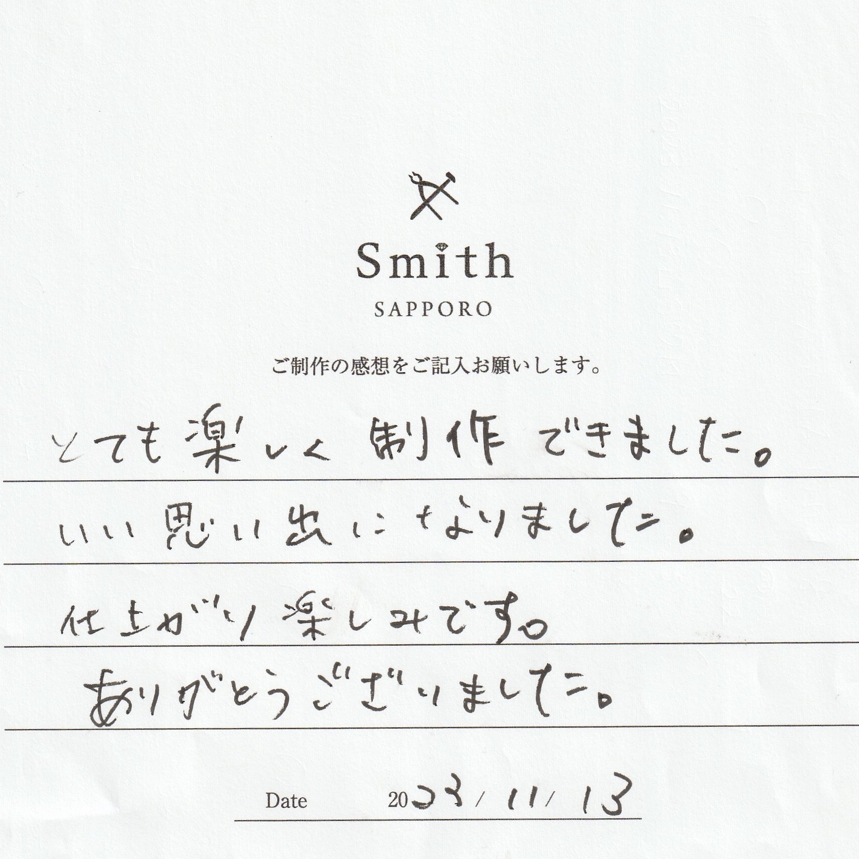 この度は、工房Smith京王プラザホテル札幌店で手作りペアリングのご制作誠にありがとうございました。
