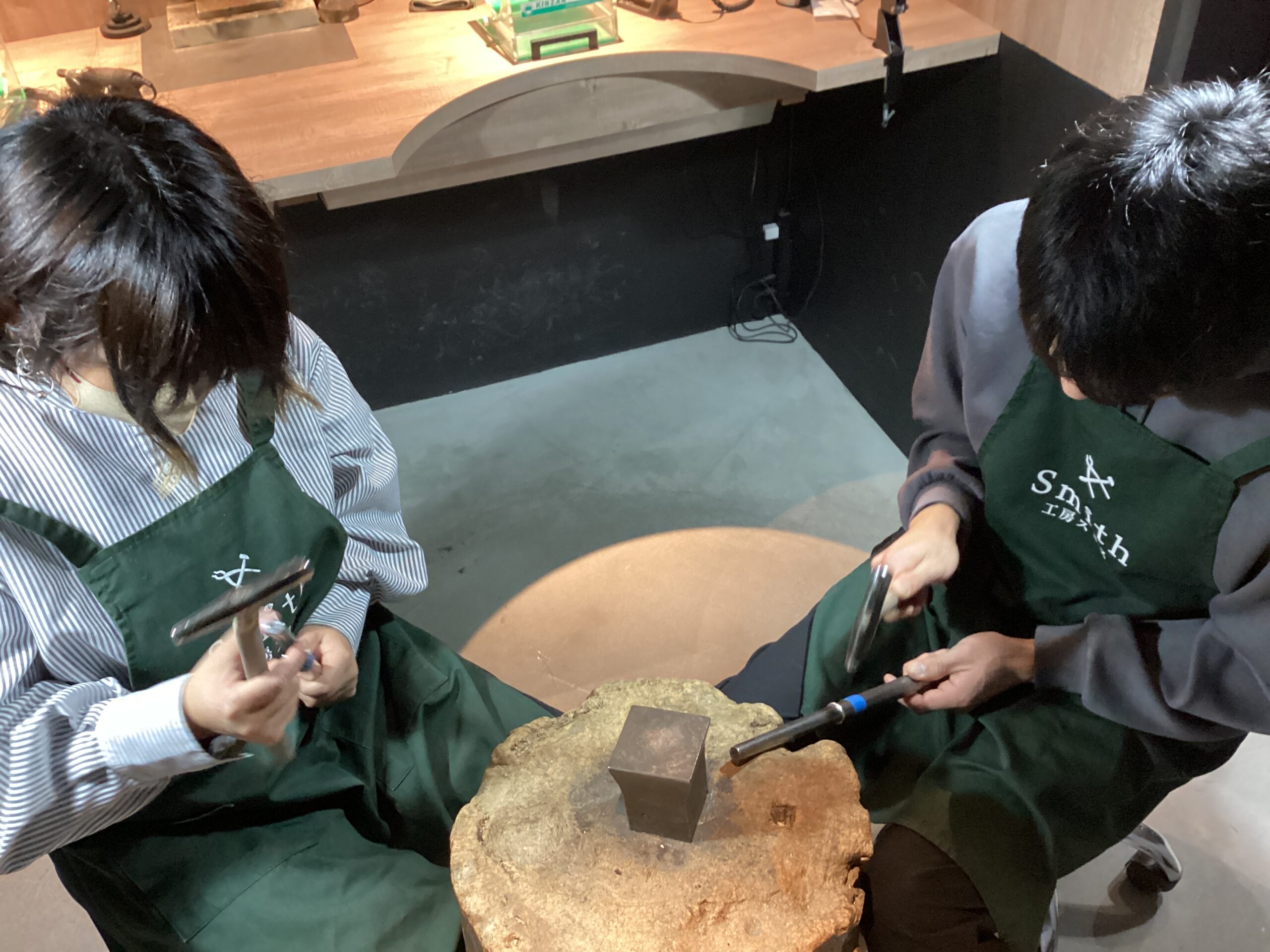 仲良くお揃いのマットハンマー模様の指輪。それぞれお相手の指輪を作り合い、ハンマー模様もお任せで!と楽しそうに制作されていたお二人に癒されました。
