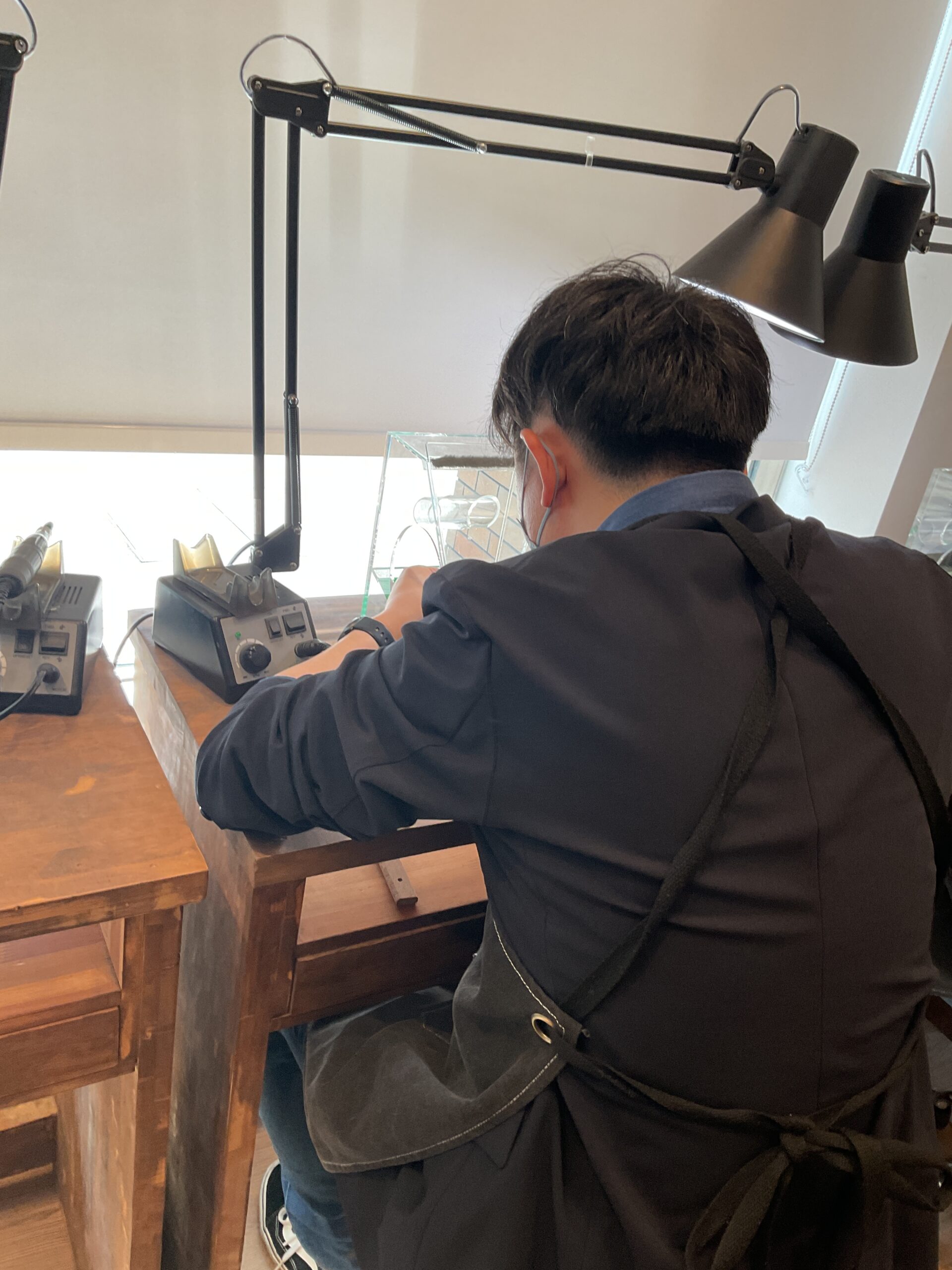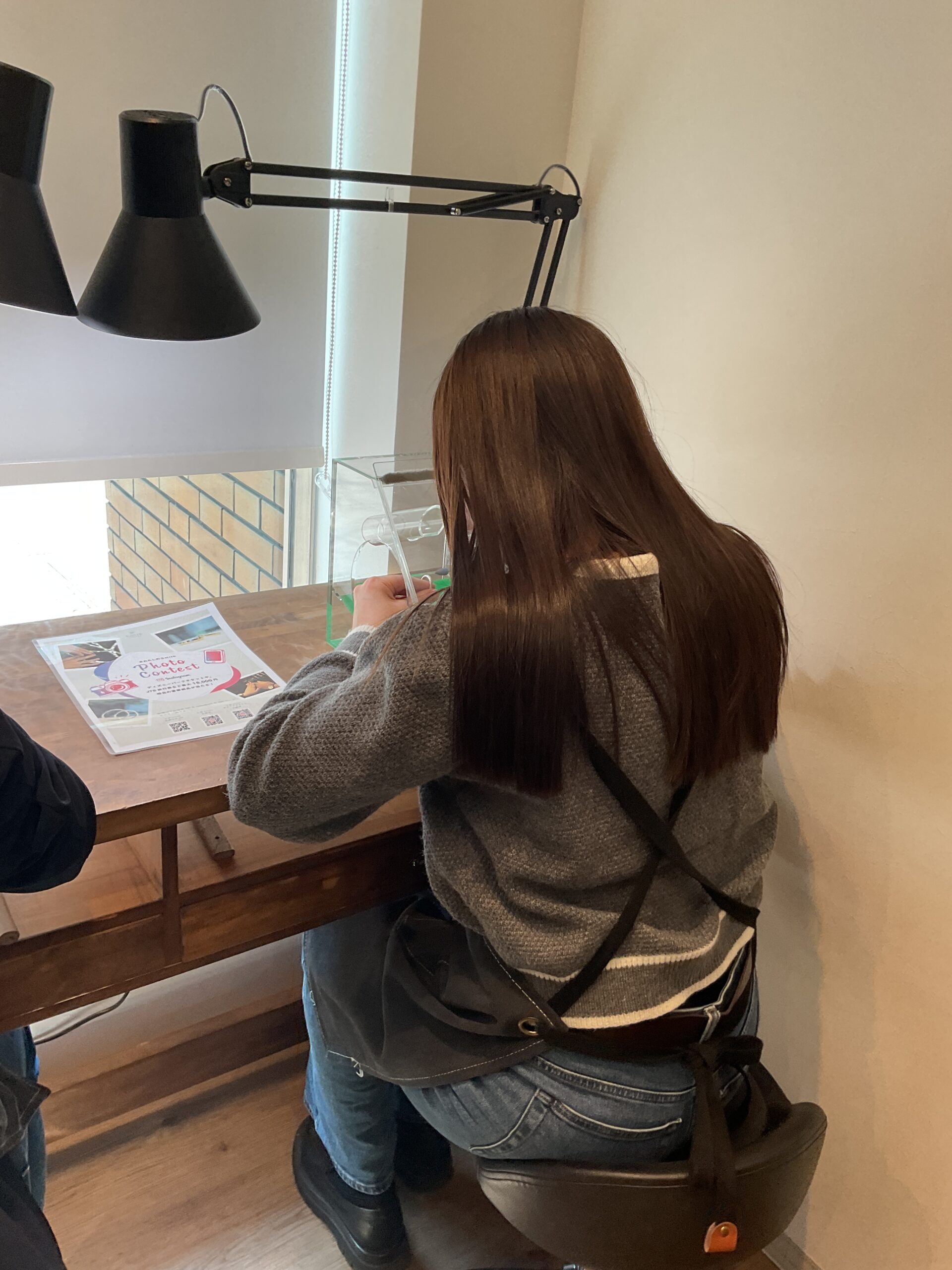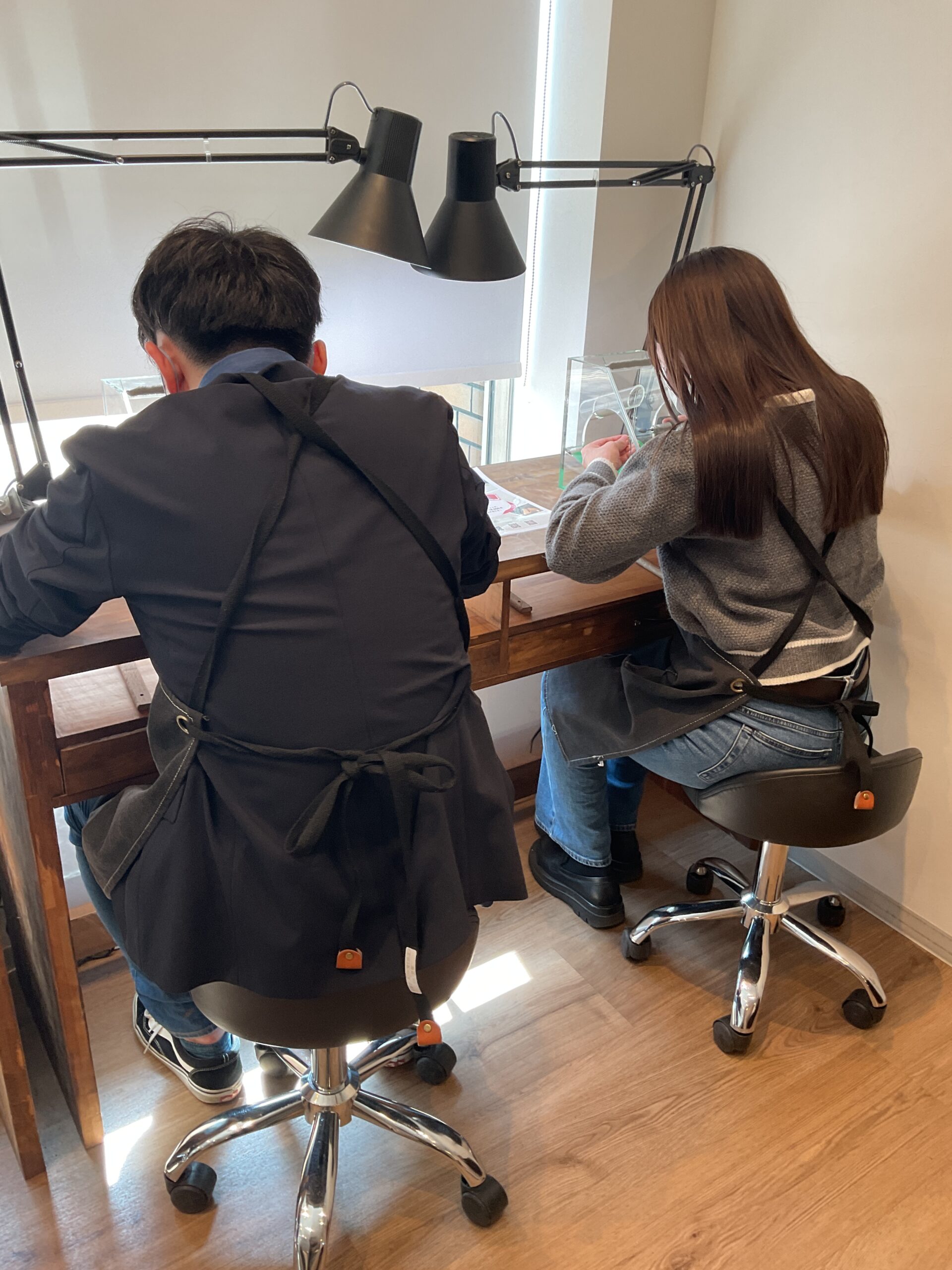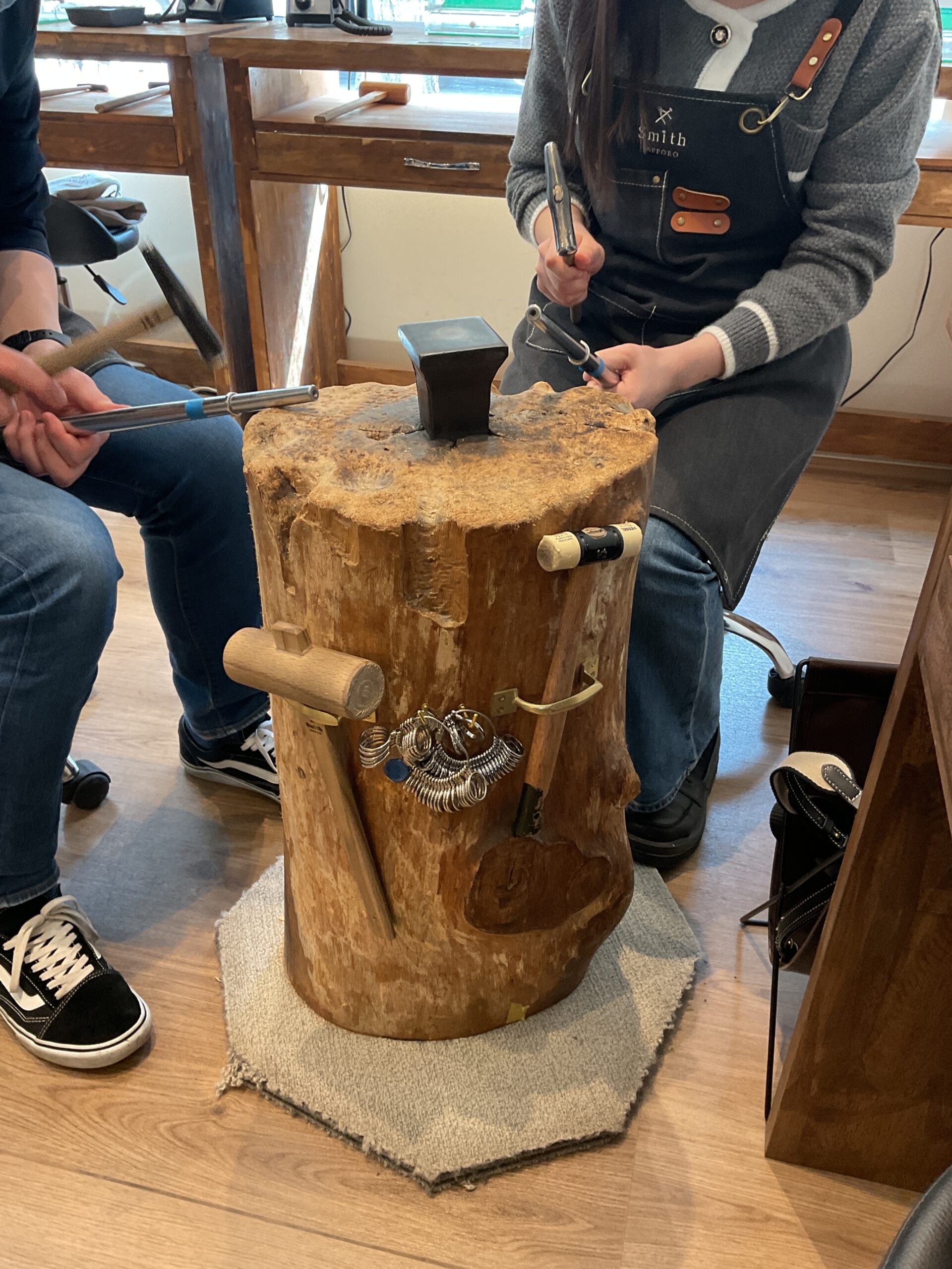 お二人が制作されたリングは、鏡面ハンマーのテクスチャーが輝くお揃いの素敵なペアリングになりました。