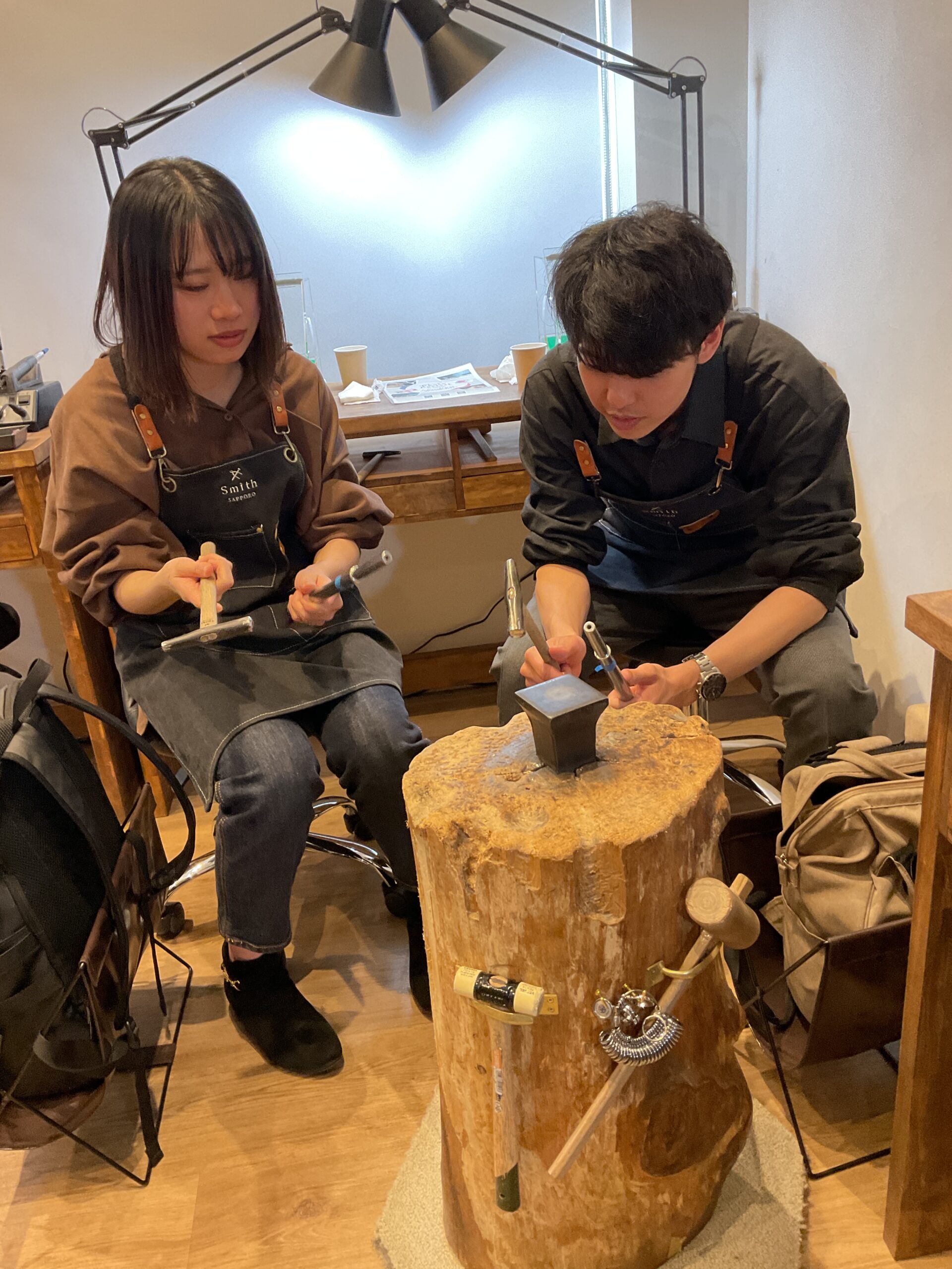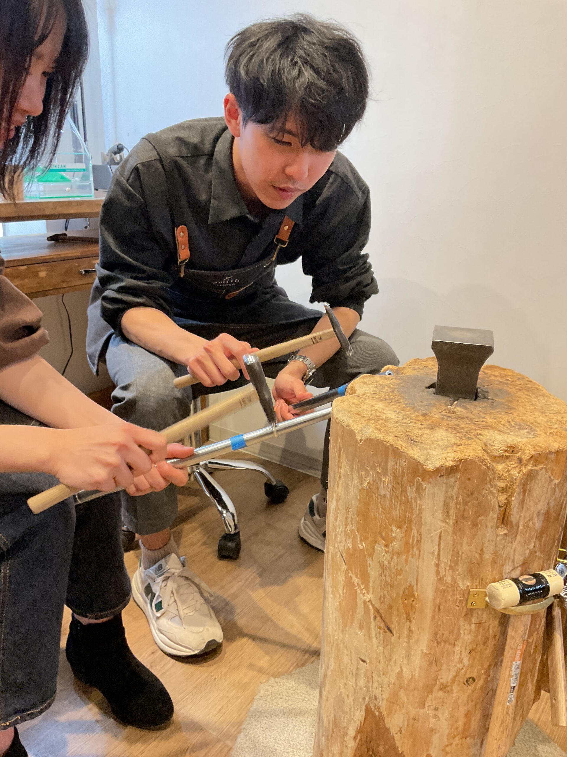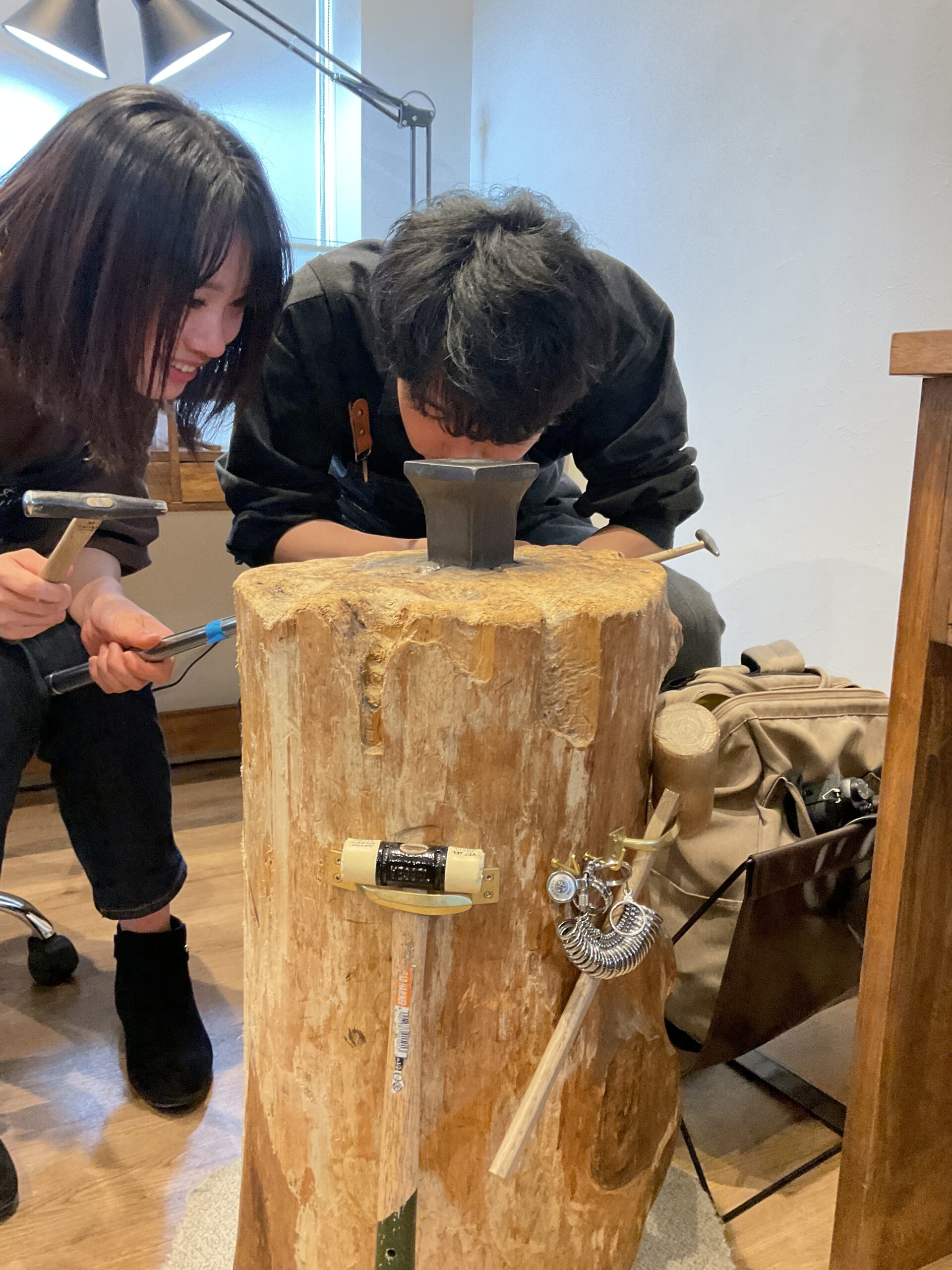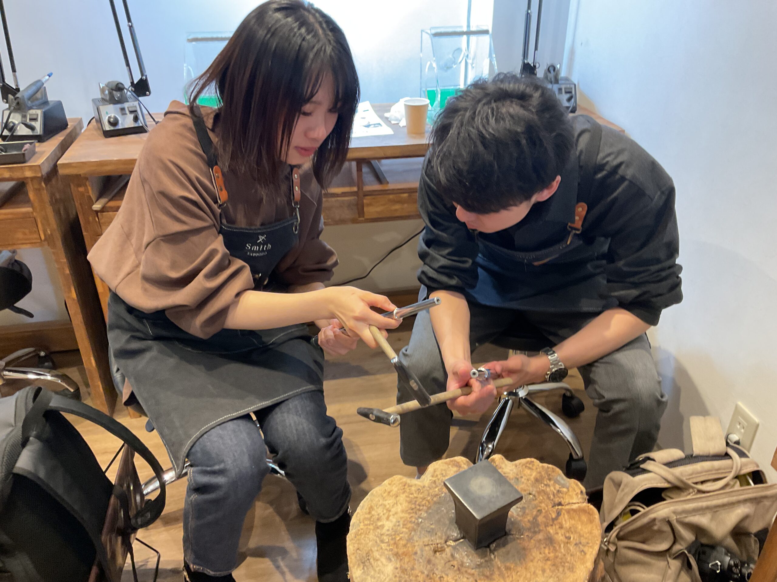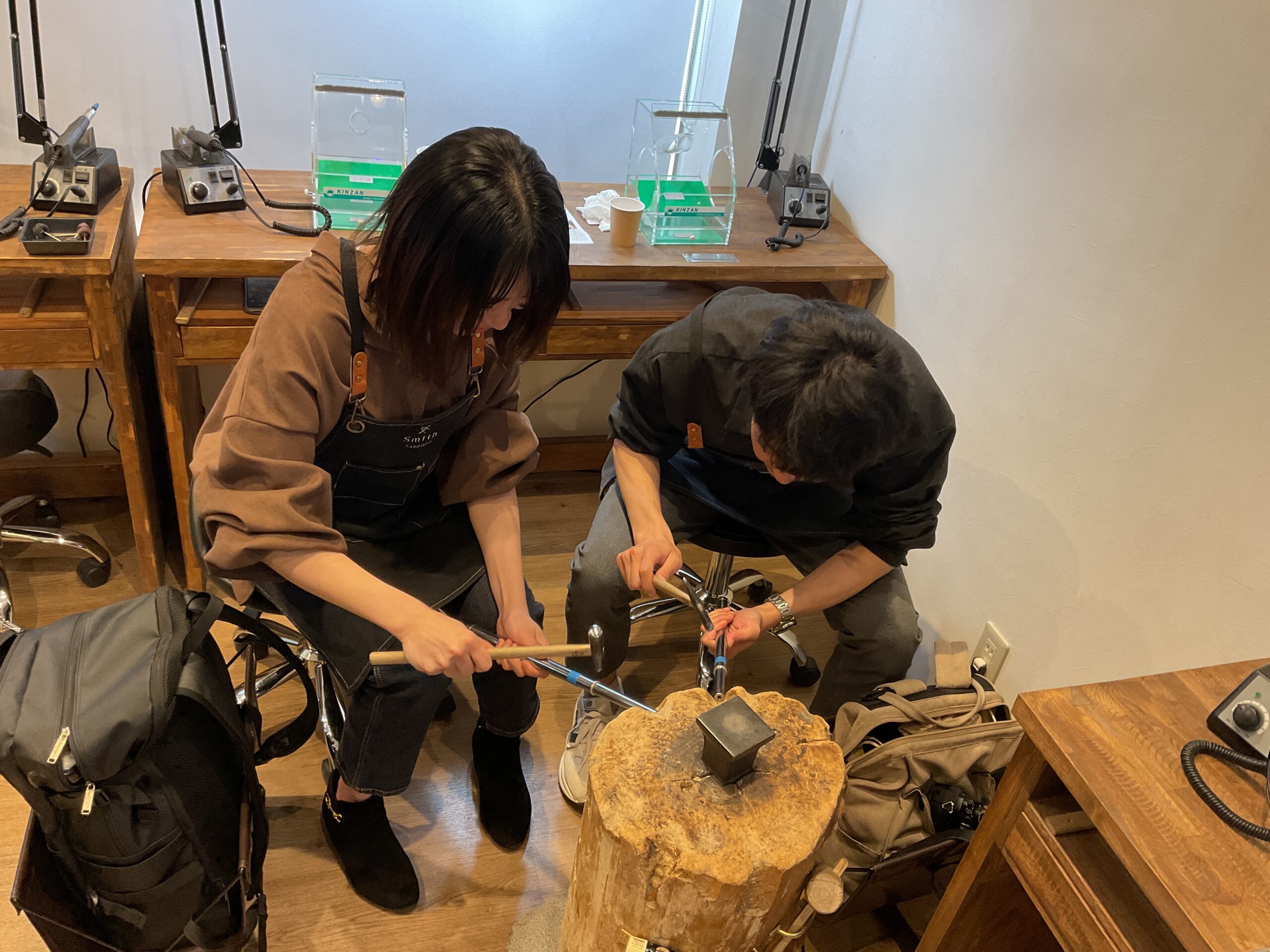 お互いのリングを一生懸命叩き、掛け替えのない指輪をお作りされましたね。