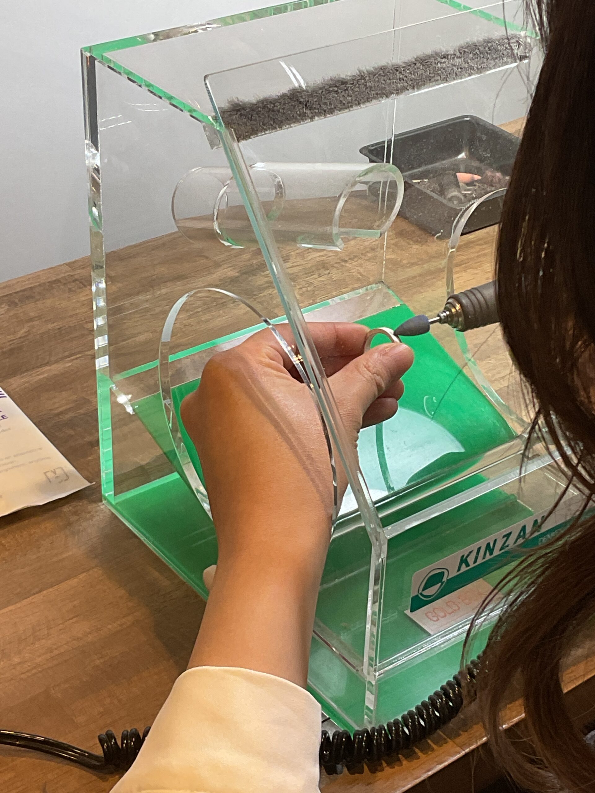 お二人が一生懸命制作されたリングの内側には、お付き合いされた記念日の刻印が入り外側には、4月の誕生石であるダイヤモンドが入ります。