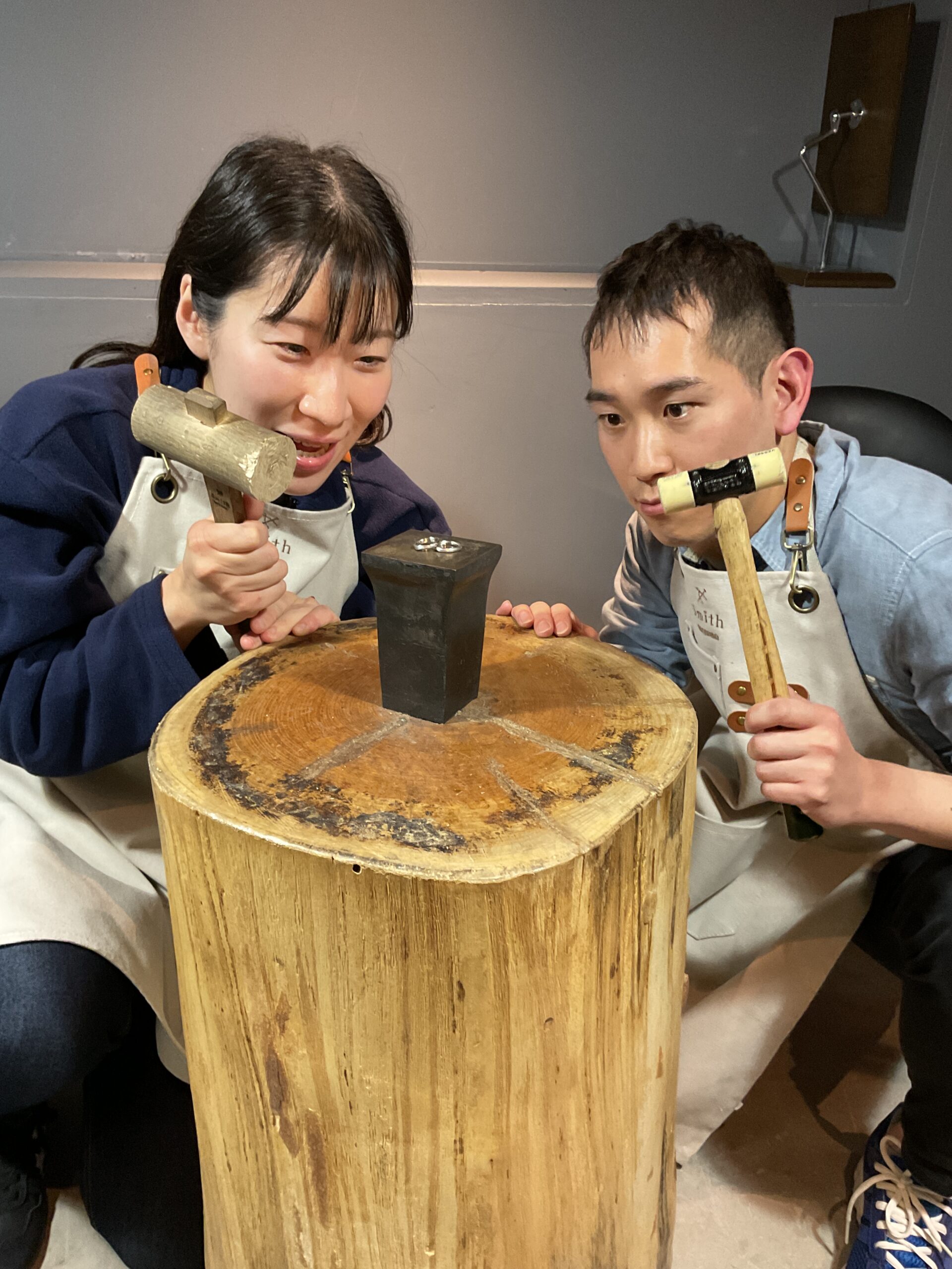 おふたりでご自身のリングをとても楽しそうに一生懸命、叩いてピカピカに磨いている姿が印象的でした。