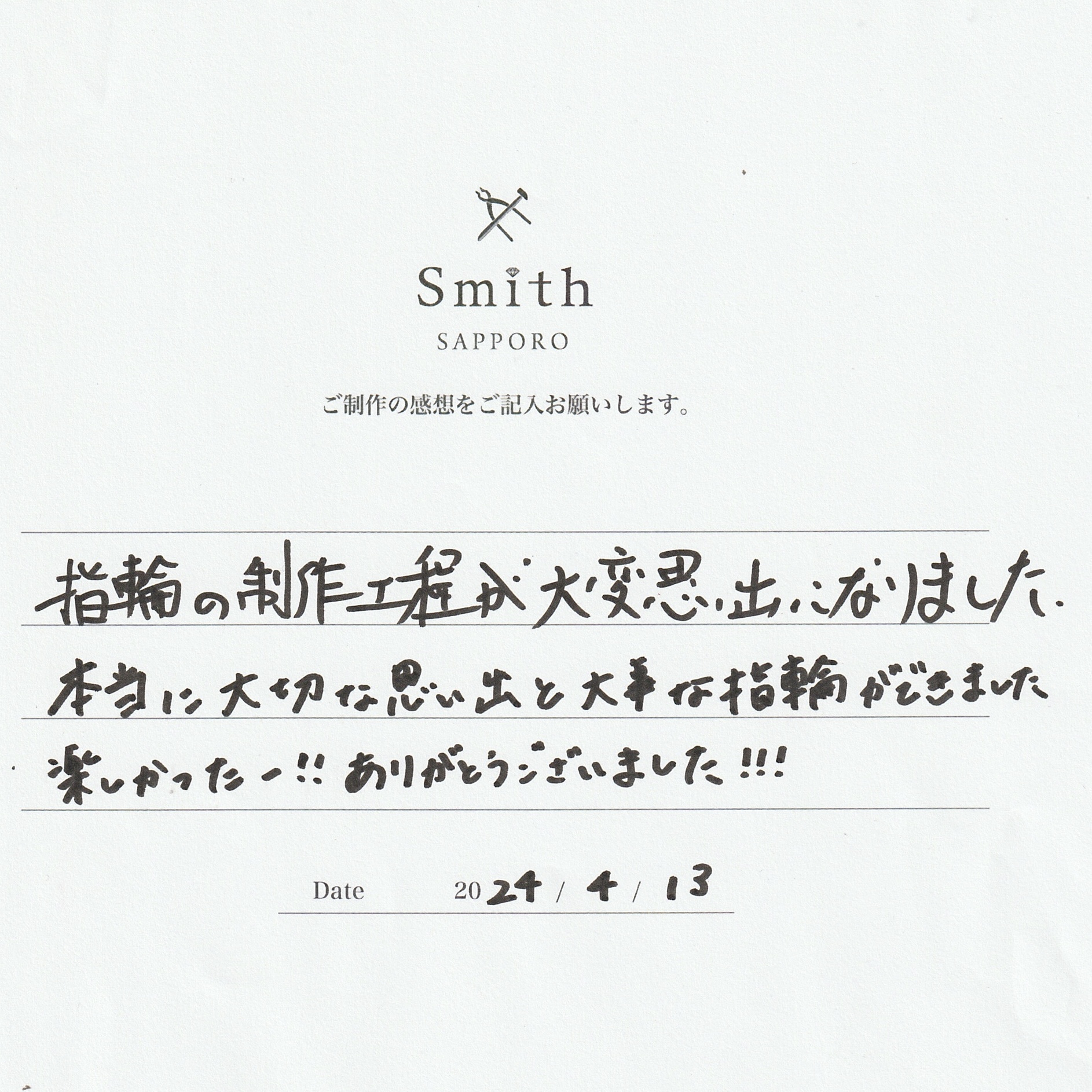 指輪の制作工程が大変思い出になりました。