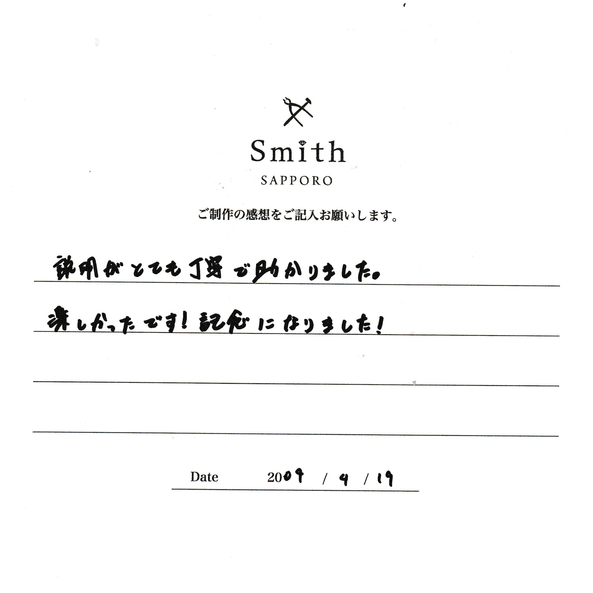 この度は、工房Smith京王プラザホテル札幌店で手作りペアリングのご制作誠にありがとうございました。