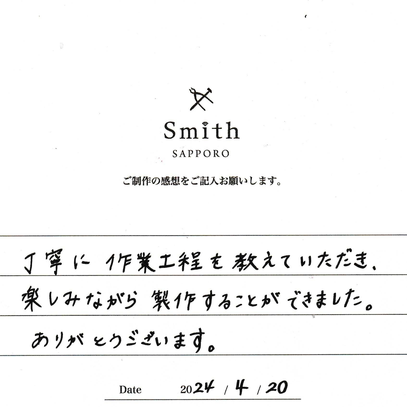この度は、工房Smith京王プラザホテル札幌店で手作りペアリングのご制作誠にありがとうございました。