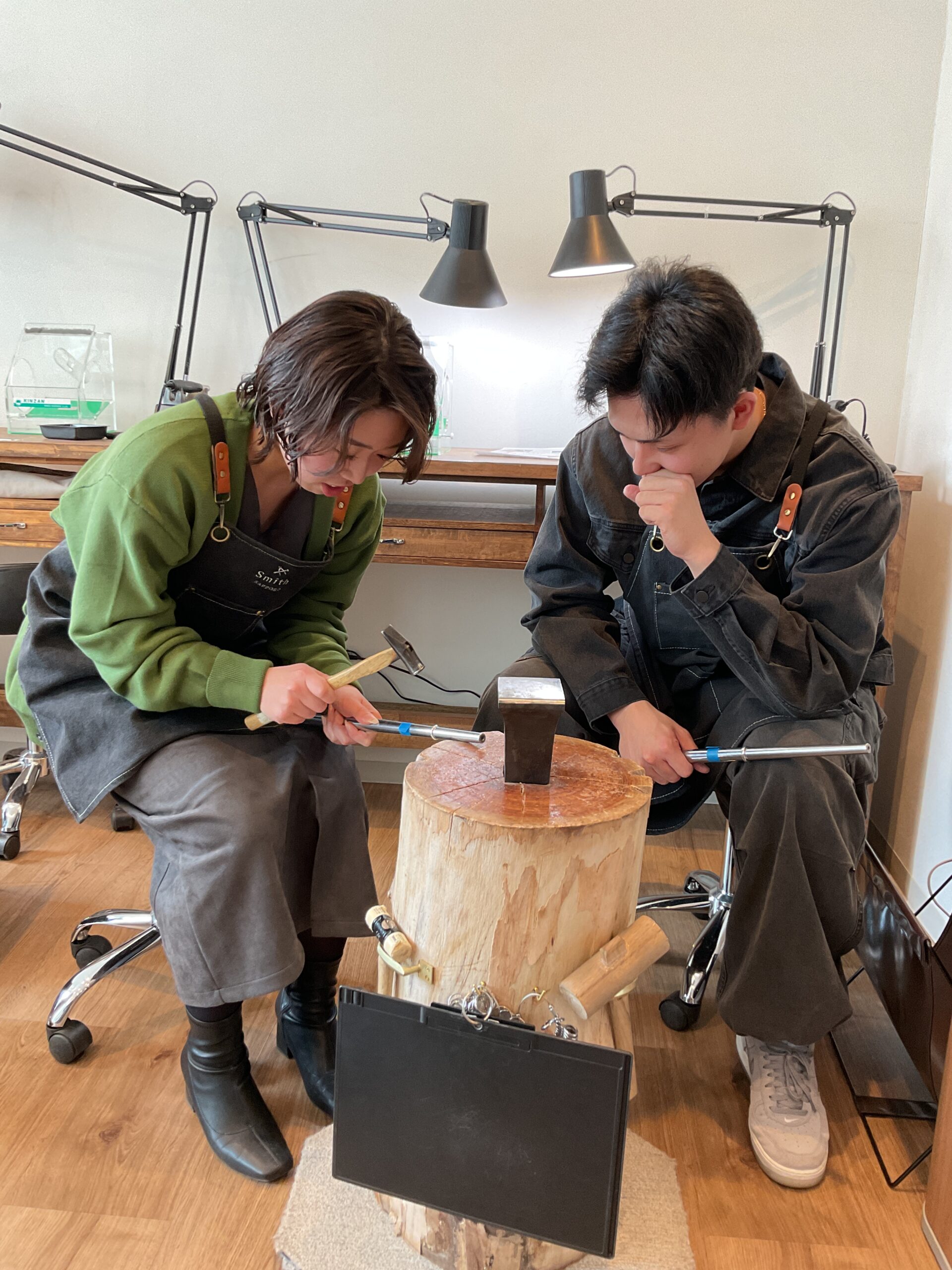 お二人が一生懸命制作したリングの表面にはテクスチャーハンマー模様が入り素敵に仕上がりましたね。
