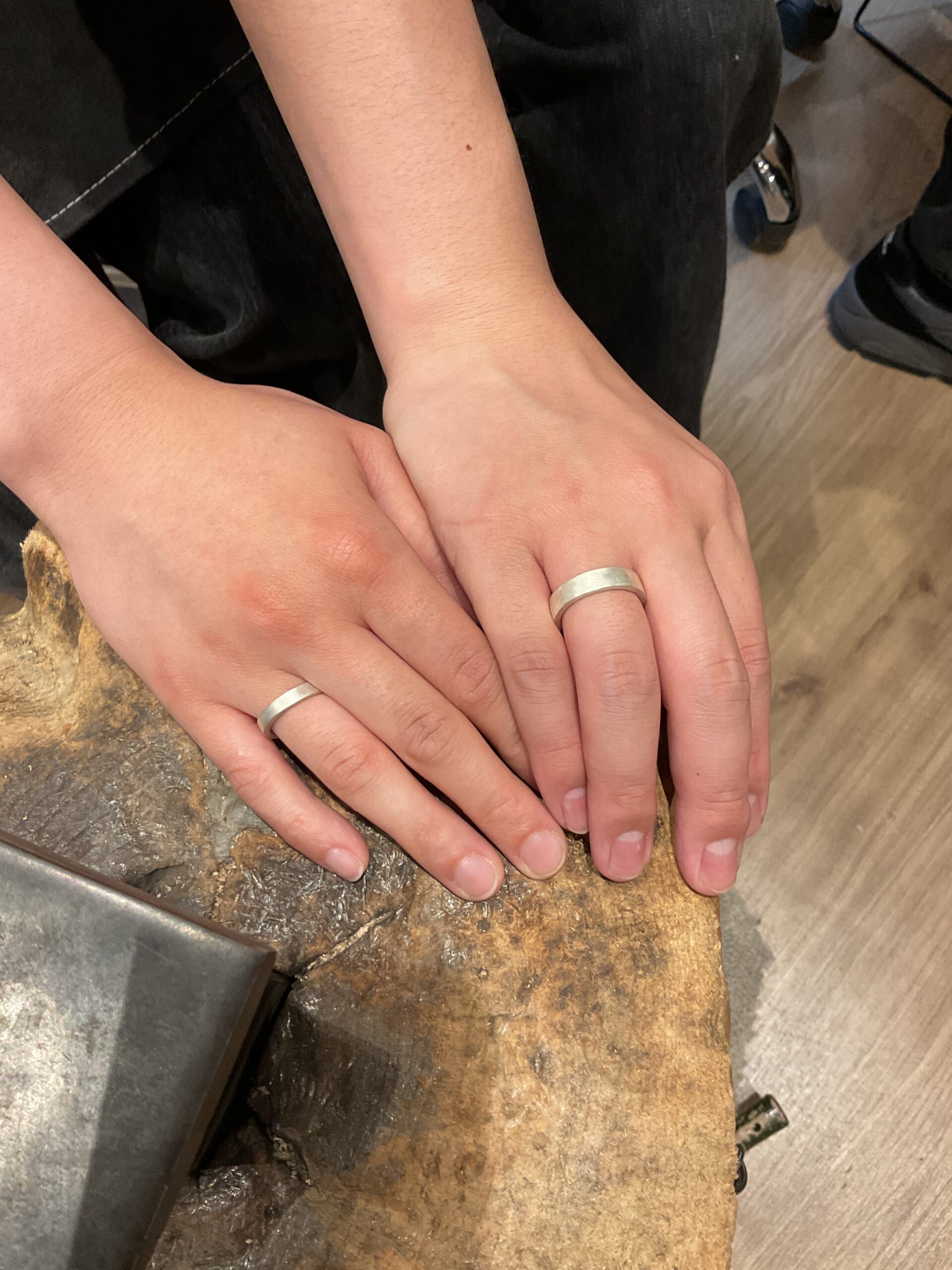 磨いたリングをマットに仕上げ、上品に輝く素敵なペアリングが完成しました。