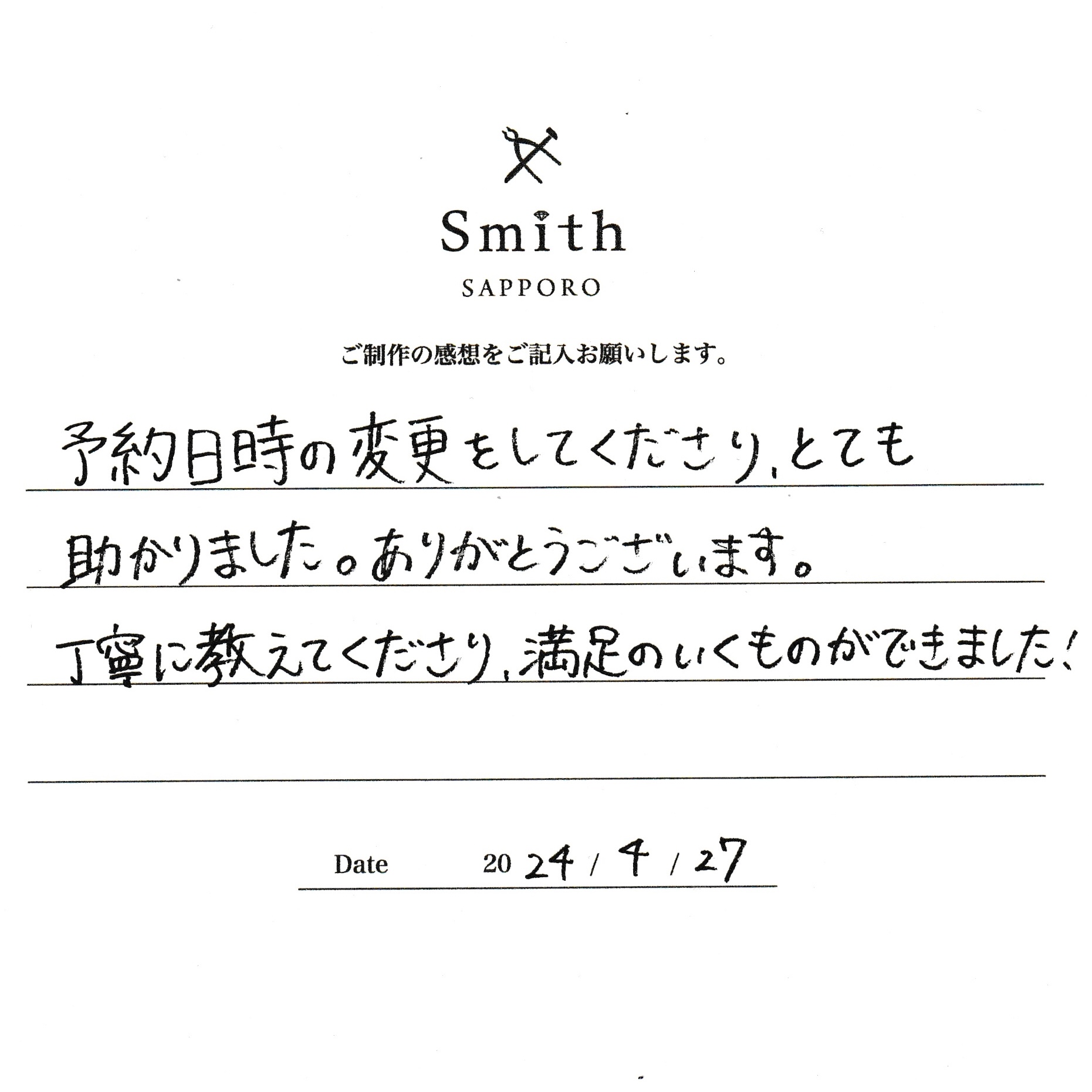 この度は、工房Smith京王プラザホテル札幌店で手作りペアリングのご制作 誠にありがとうございました。