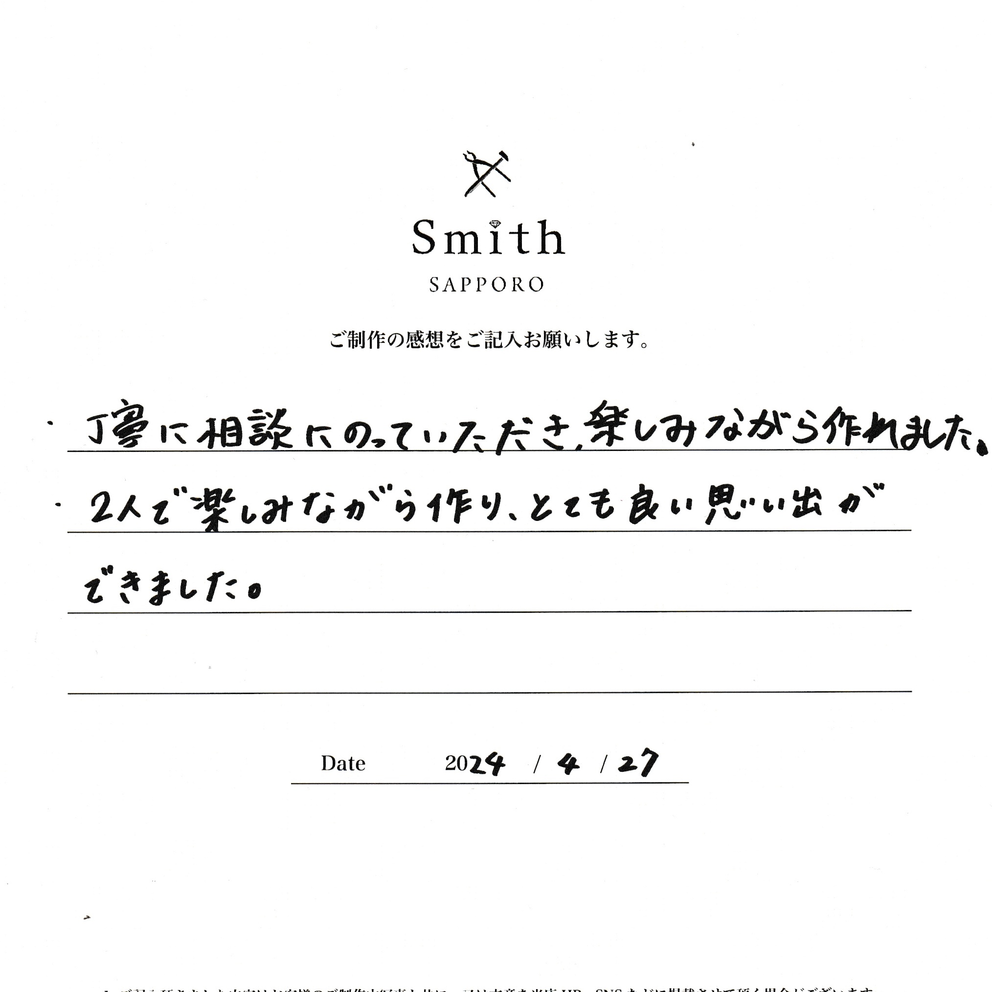 工房Smith札幌でお客様がご制作された指輪をご紹介