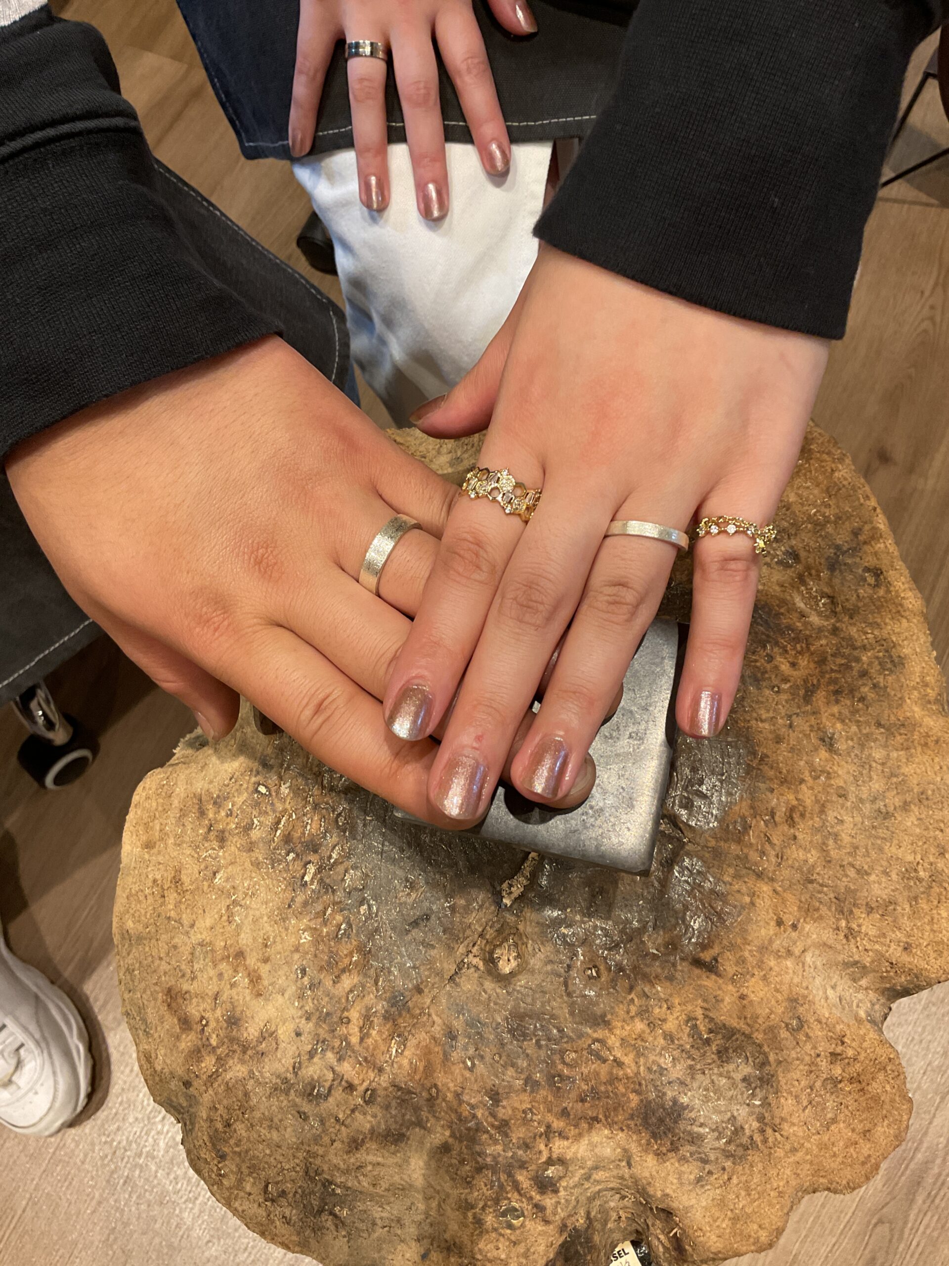 スターダストのテクスチャーに仕上げていただいたリングは、キラキラと素敵に輝いていましたね。