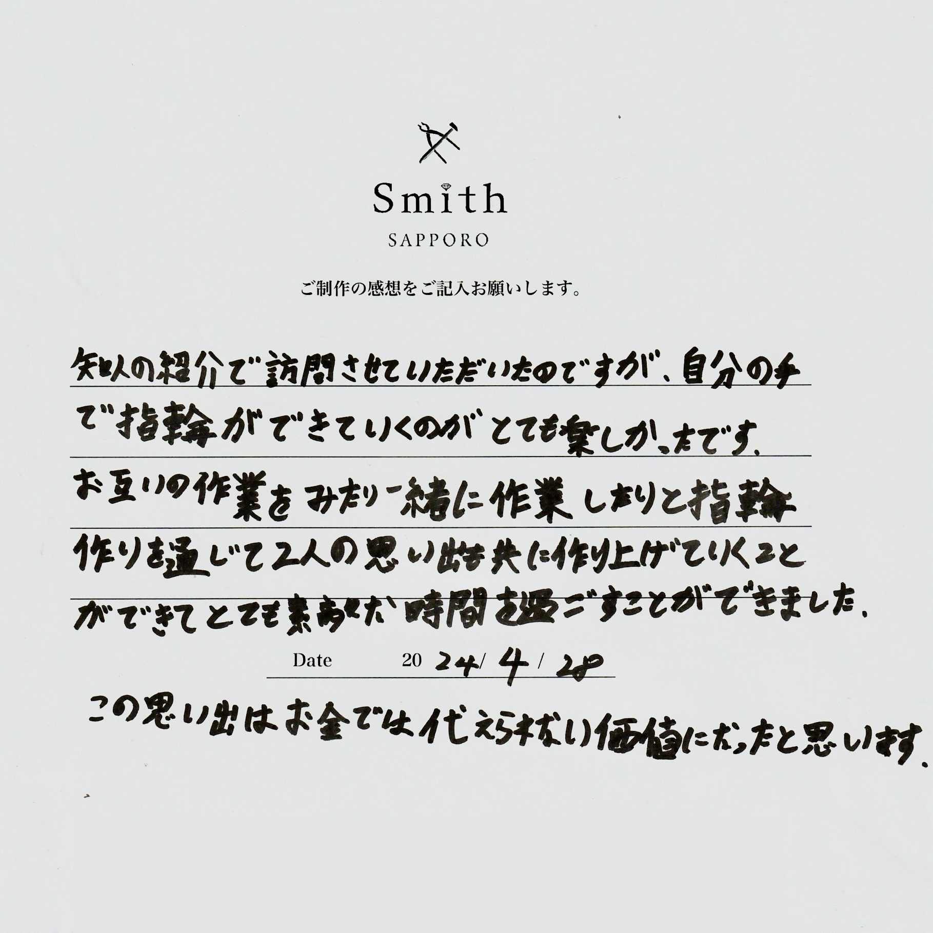 大切なおふたりの指輪制作という記念日に、携わることができて幸せな気持ちでいっぱいです。
