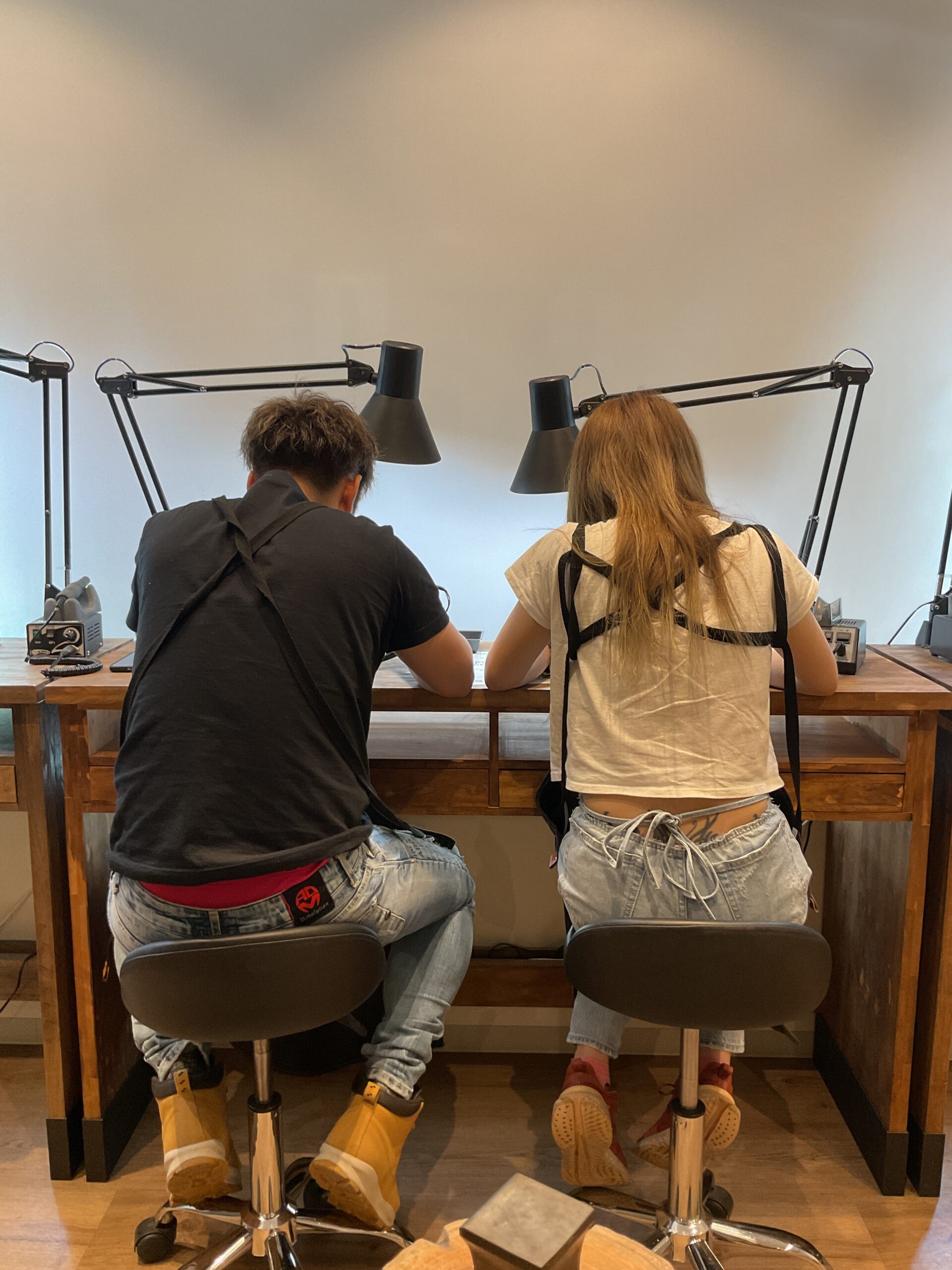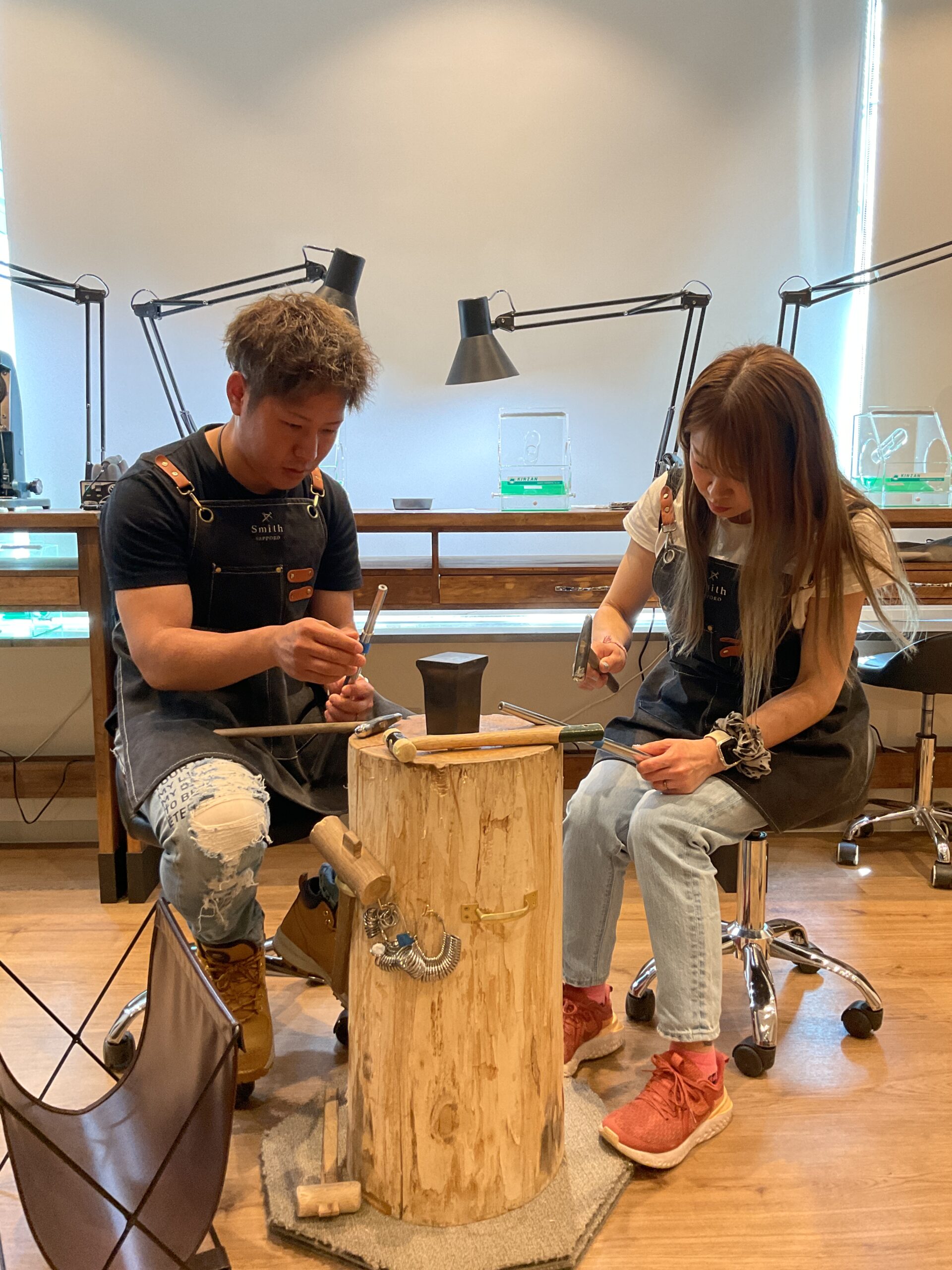 お互いに作り合ったハンマー模様のリング、とても綺麗に仕上がっておりました。