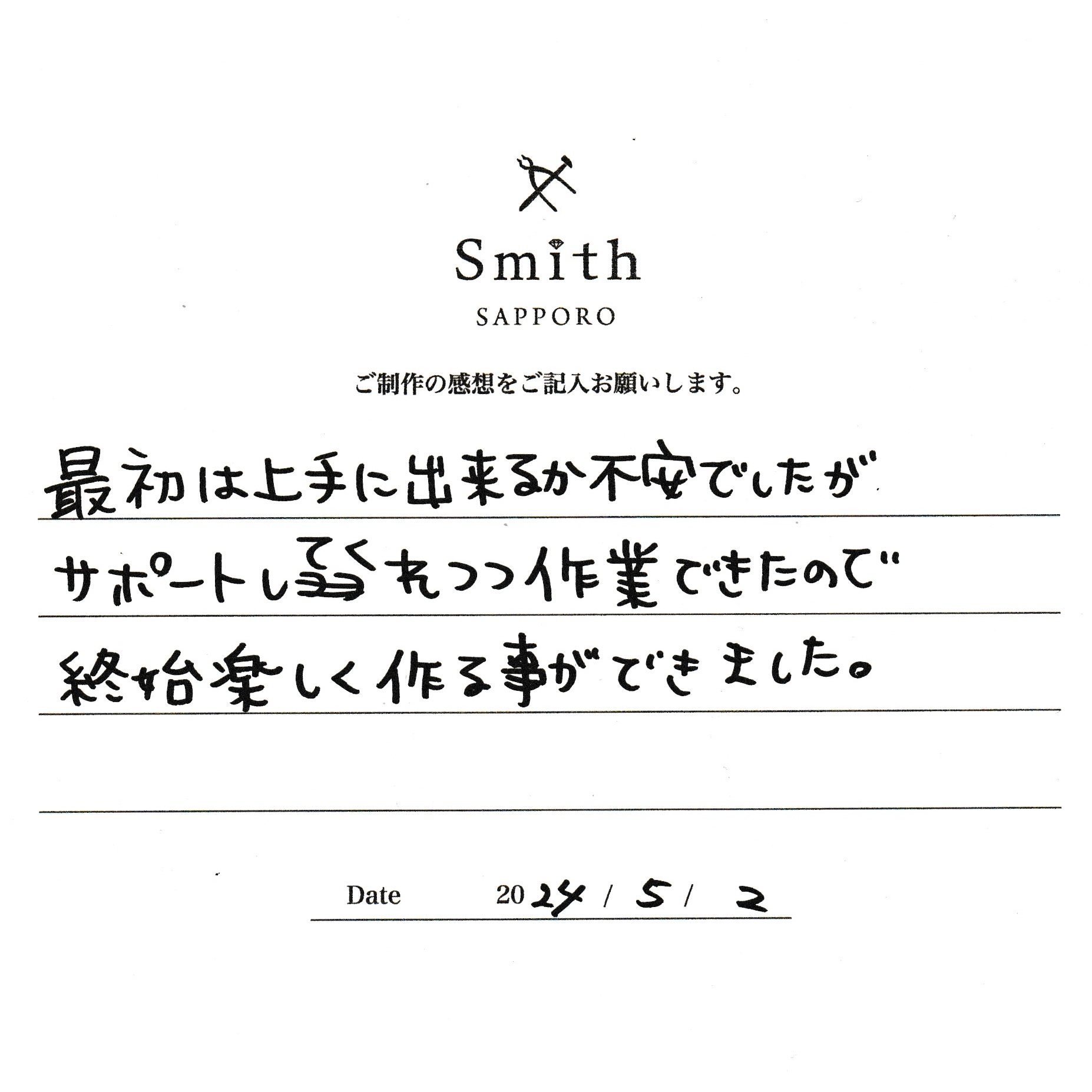 この度は、工房Smith京王プラザホテル札幌店で手作りペアリングのご制作誠にありがとうございました。