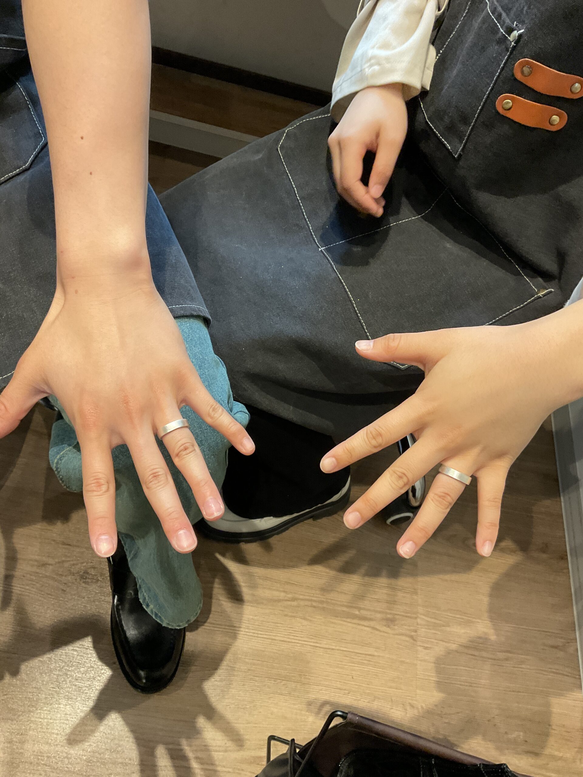 お二人が一生懸命制作されたリングは、マットのテクスチャーが大人っぽい仕上がりのお揃いの5mm幅リングになりましたね。