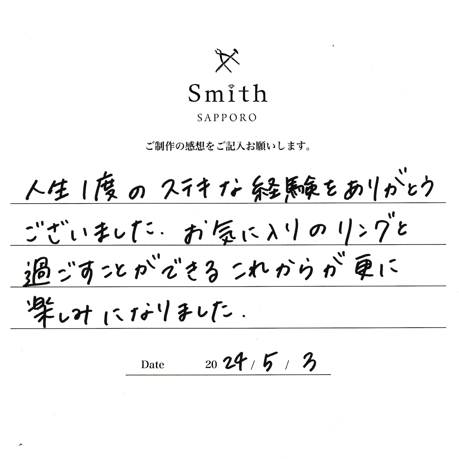 この度は数あるブライダルジュエリー店の中から工房スミスにご来店いただきありがとうございます。
