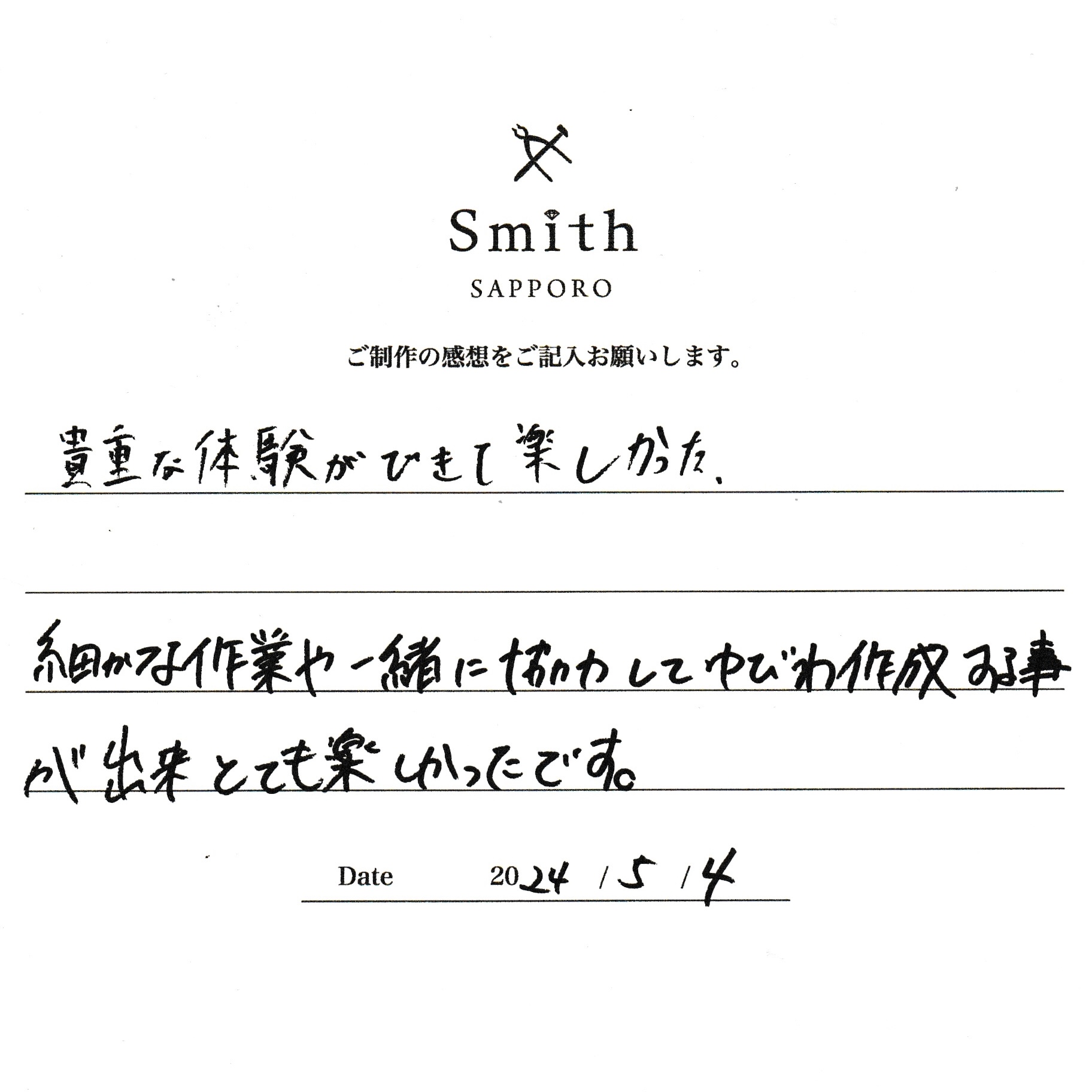 細かな作業を一緒に協力して指輪作成することができとても楽しかったです。