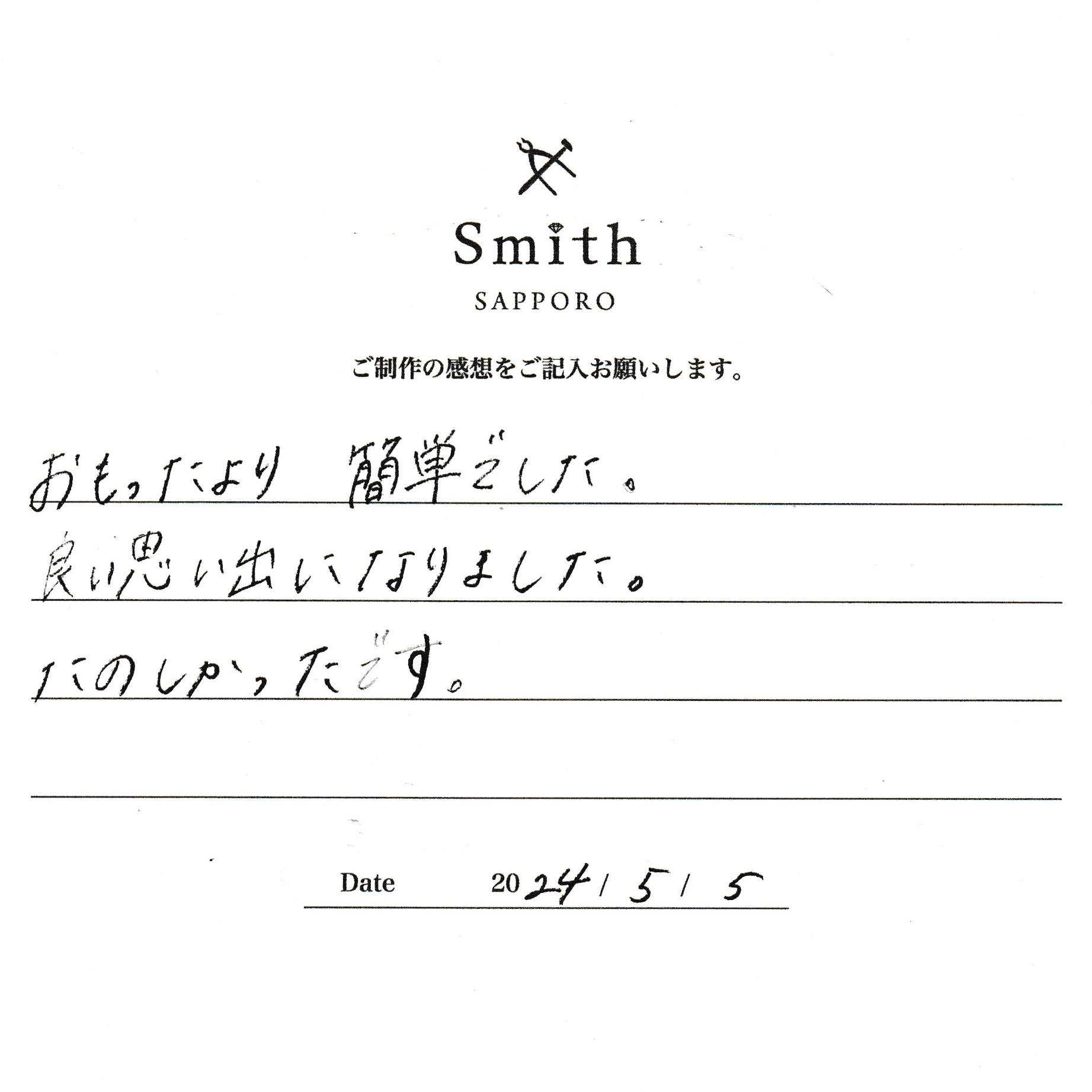 この度は、工房Smith京王プラザホテル札幌店で