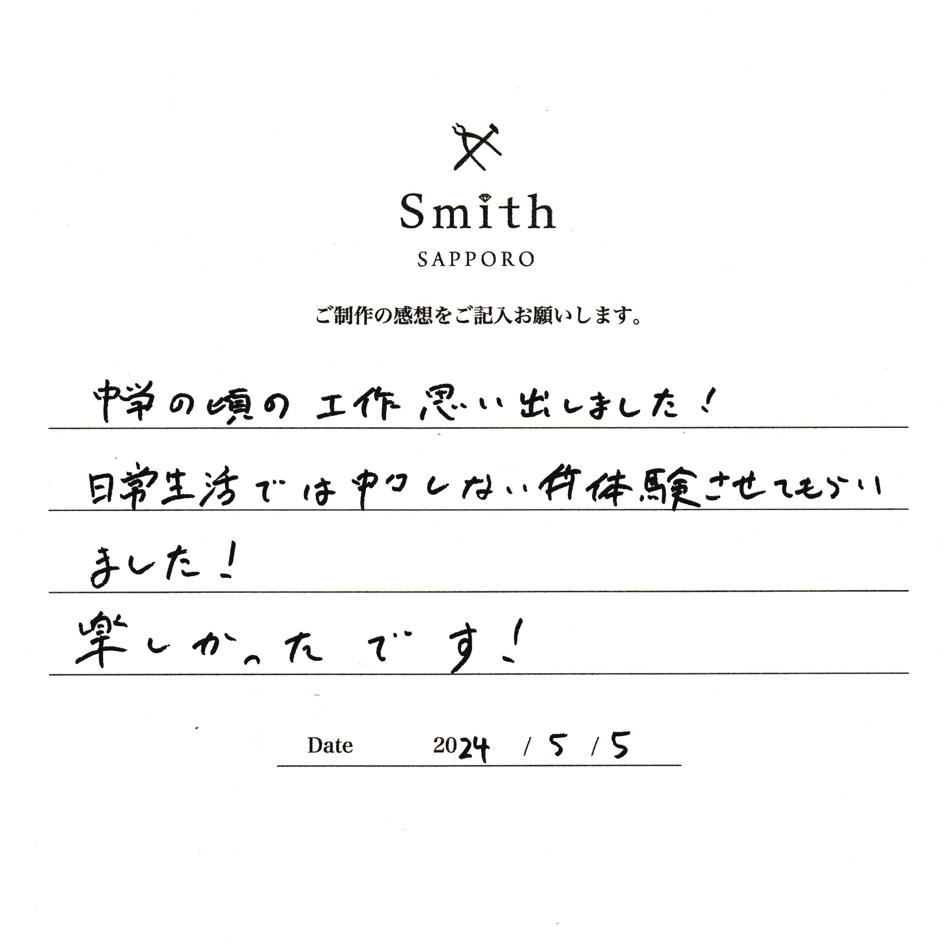 この度は、工房Smith京王プラザホテル札幌店で手作りペアリングのご制作誠にありがとうございました。