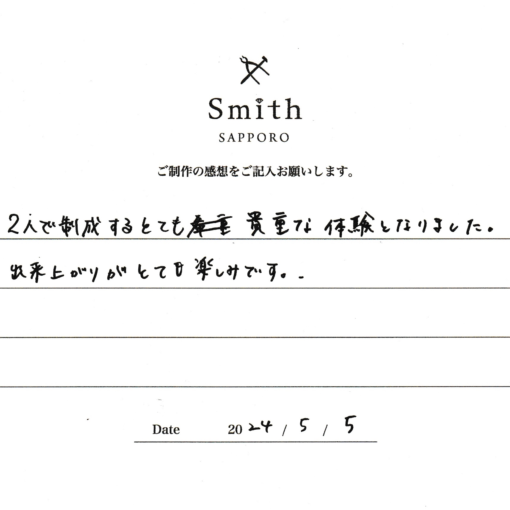 この度は、工房Smith京王プラザホテル札幌店で手作りペアリングのご制作誠にありがとうございました。
