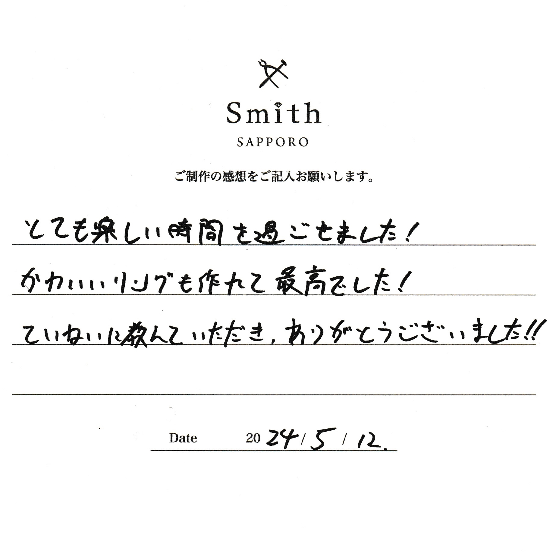 この度は、工房Smith京王プラザホテル札幌店で手作りペアリングのご制作誠にありがとうございました。