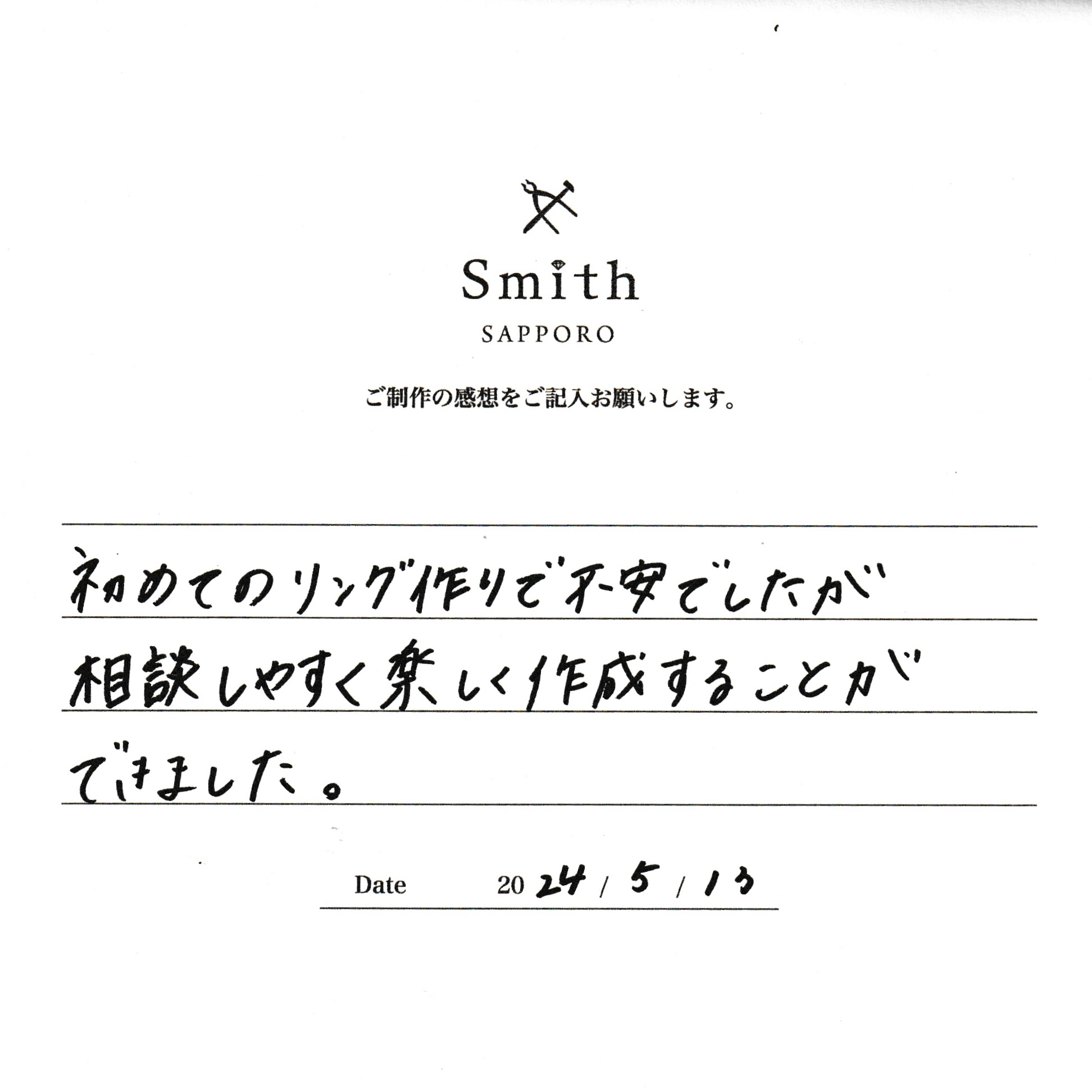 この度は、工房Smith京王プラザホテル札幌店で手作りペアリングのご制作誠にありがとうございました。