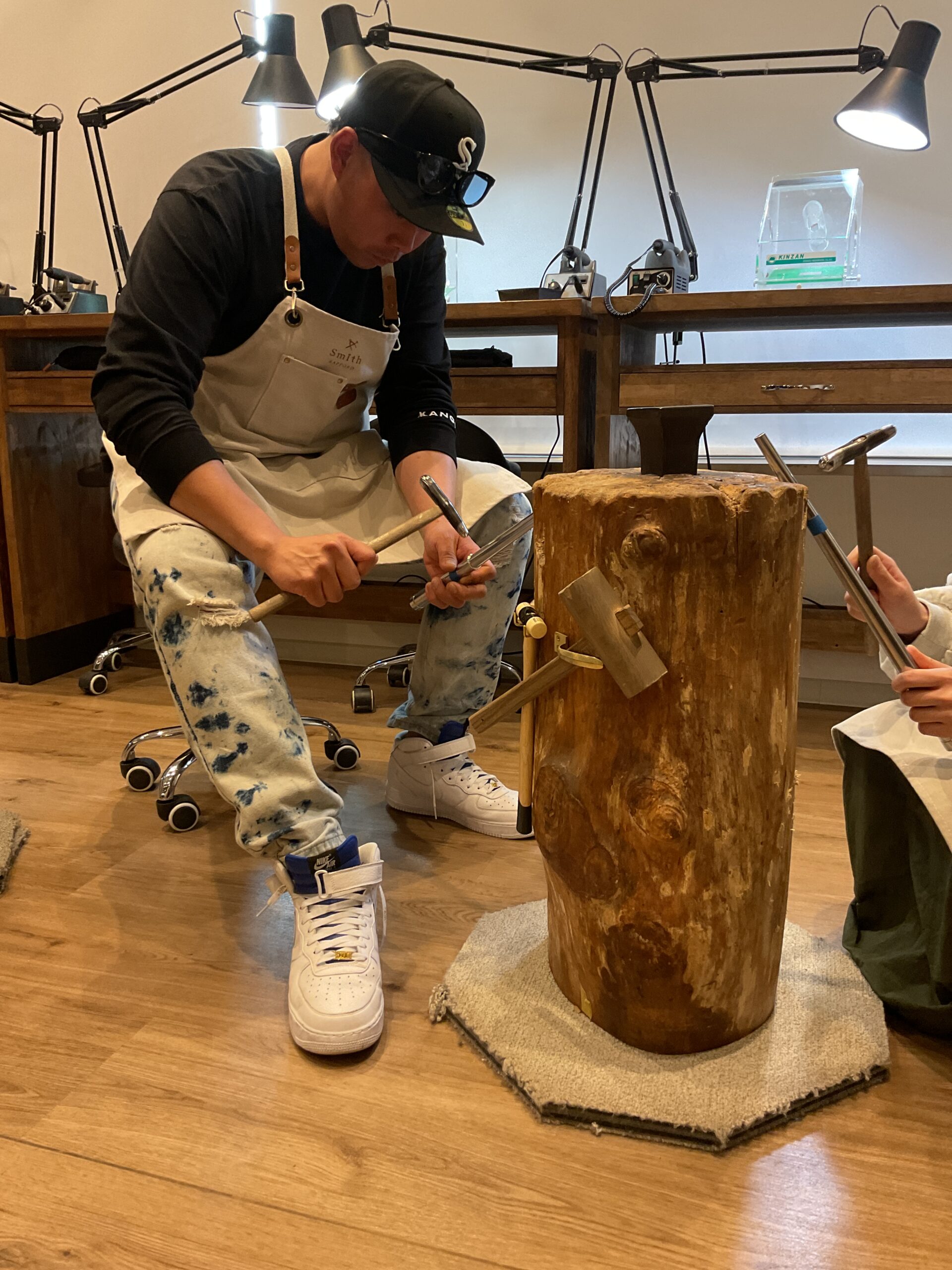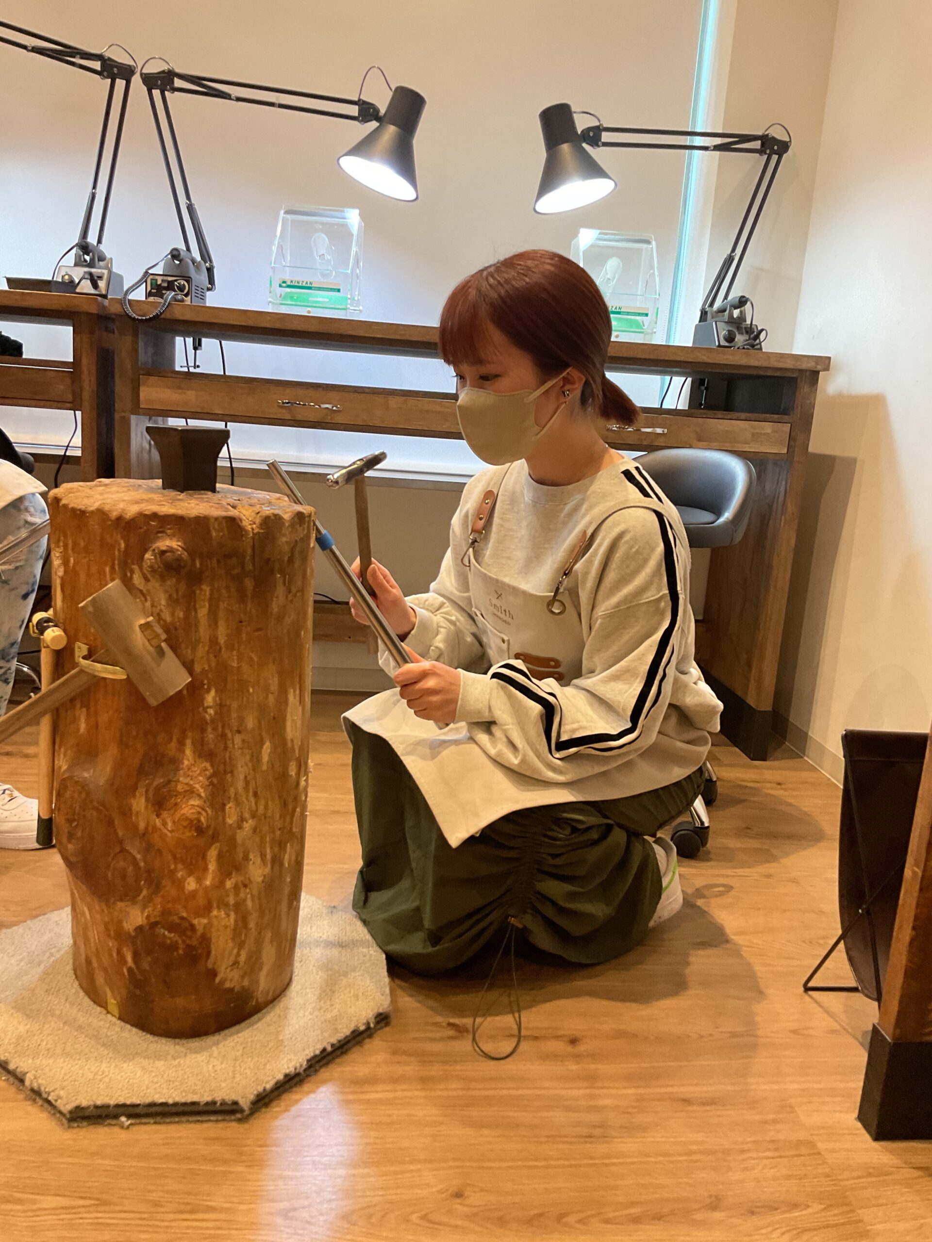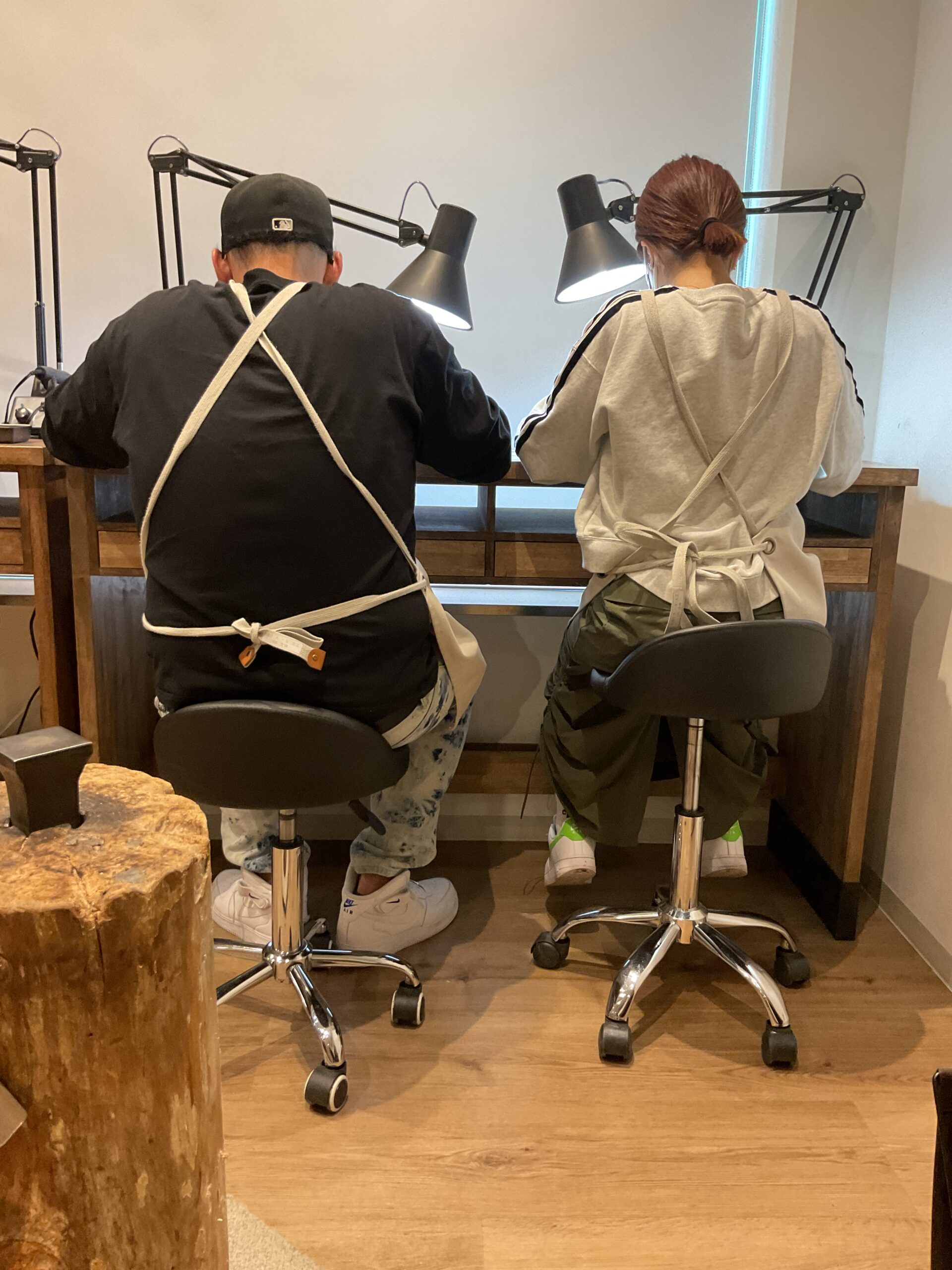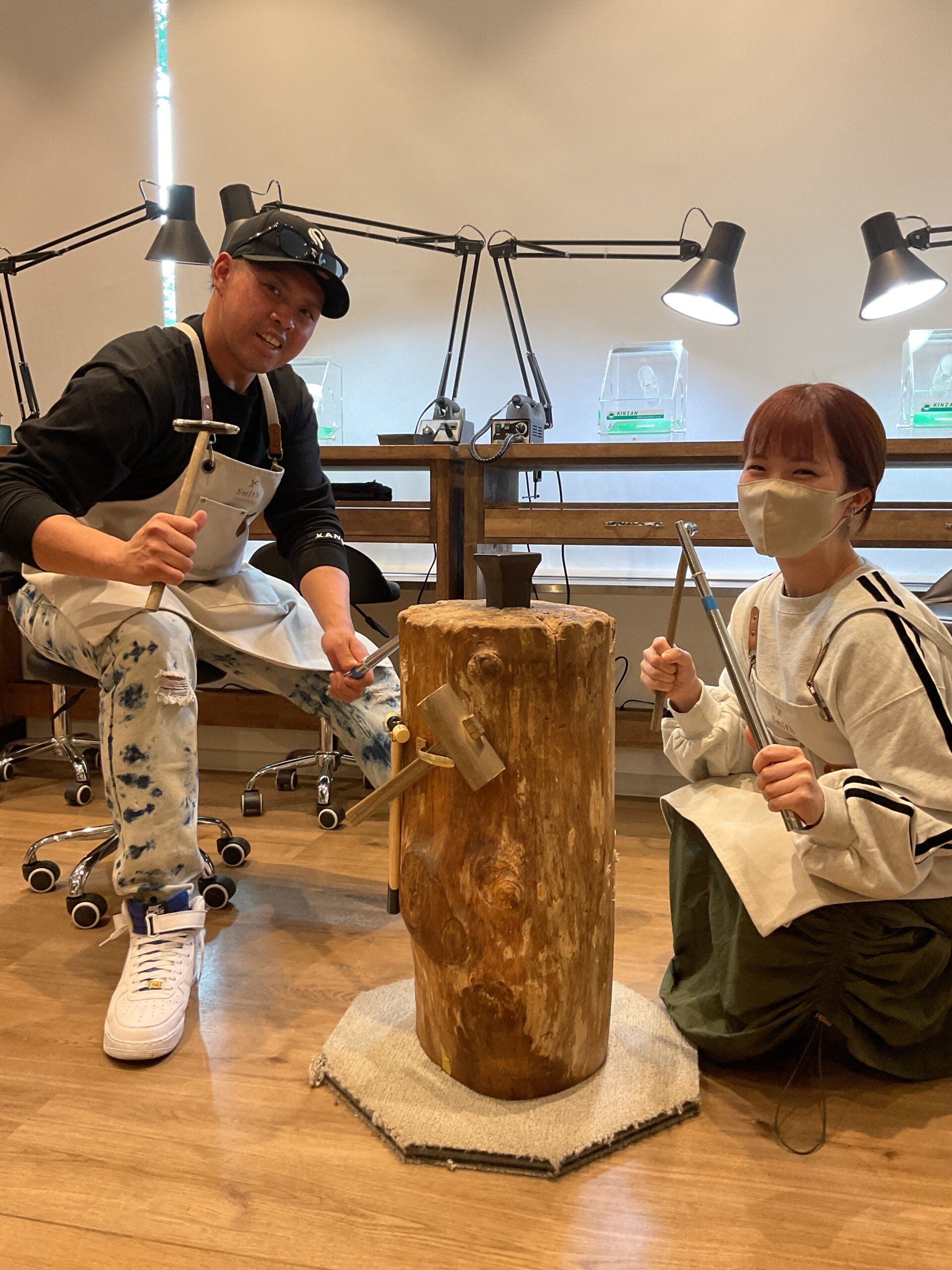 お二人が制作したリングは、ピカピカに磨かれ、ハンマー模様がつけられた素敵なリングになりましたね。