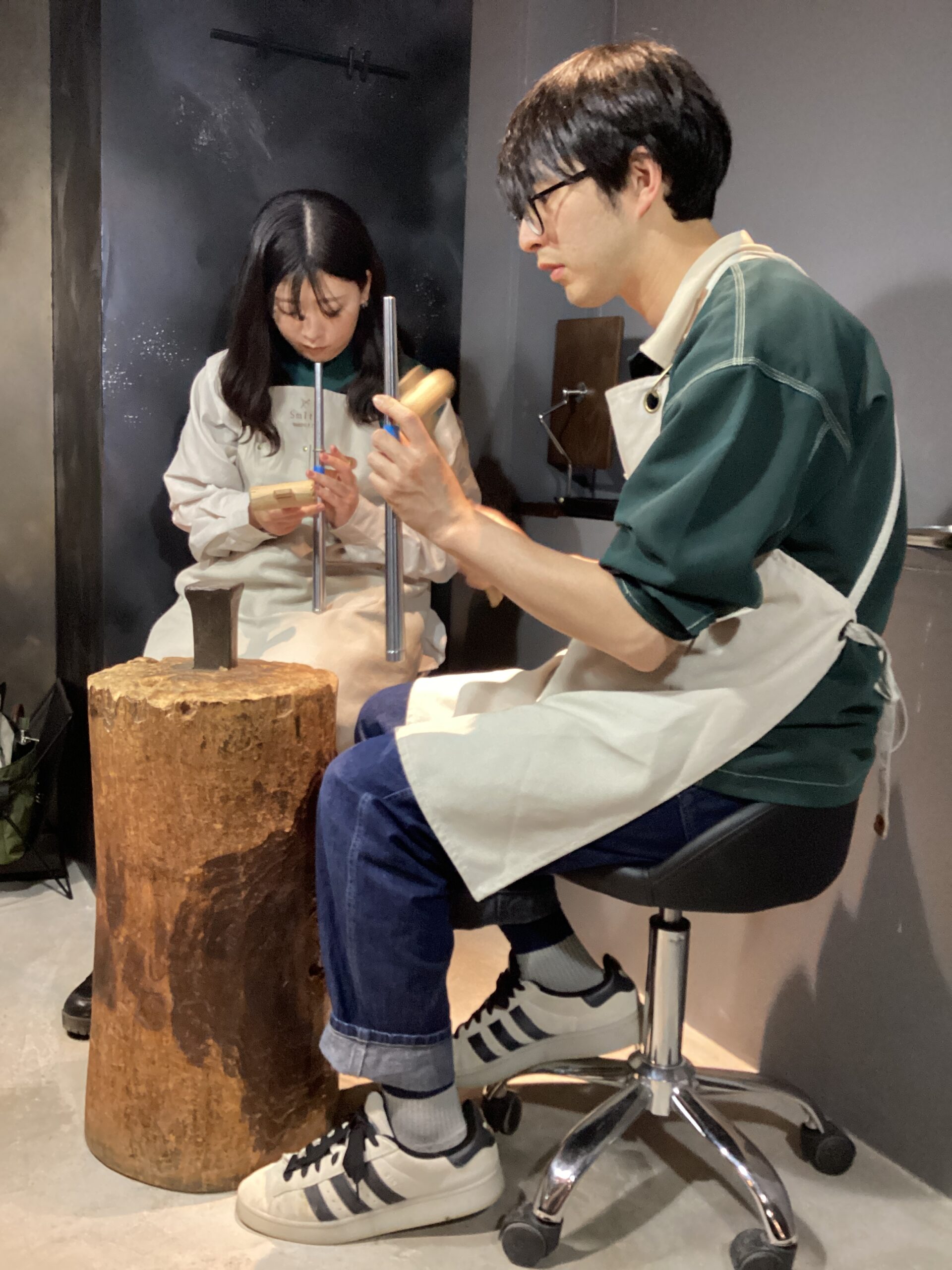 1本の棒からお互いの指輪を作り合うのとっても楽しかったです。