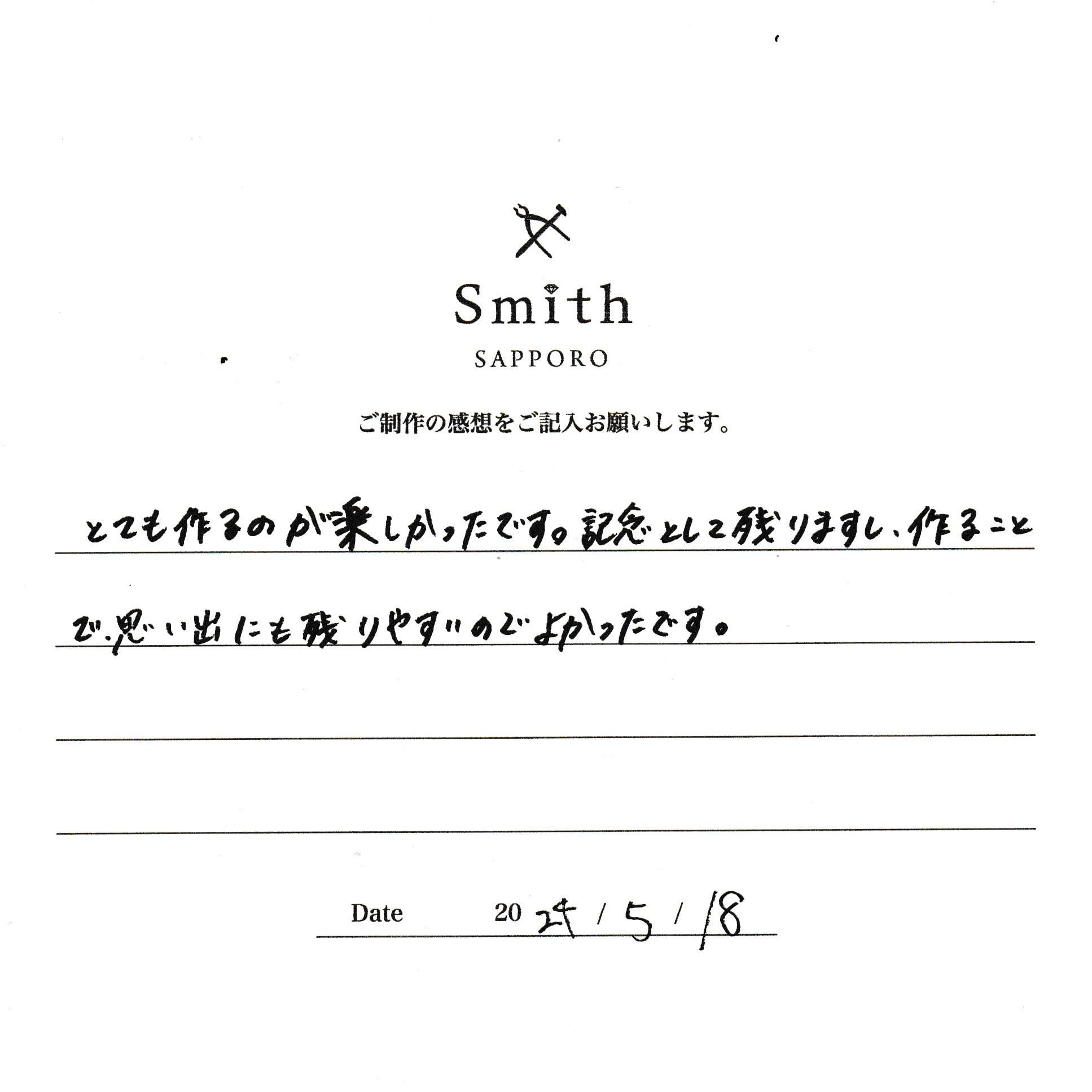 この度は、工房Smith京王プラザホテル札幌店で手作りペアリングのご制作誠にありがとうございました。