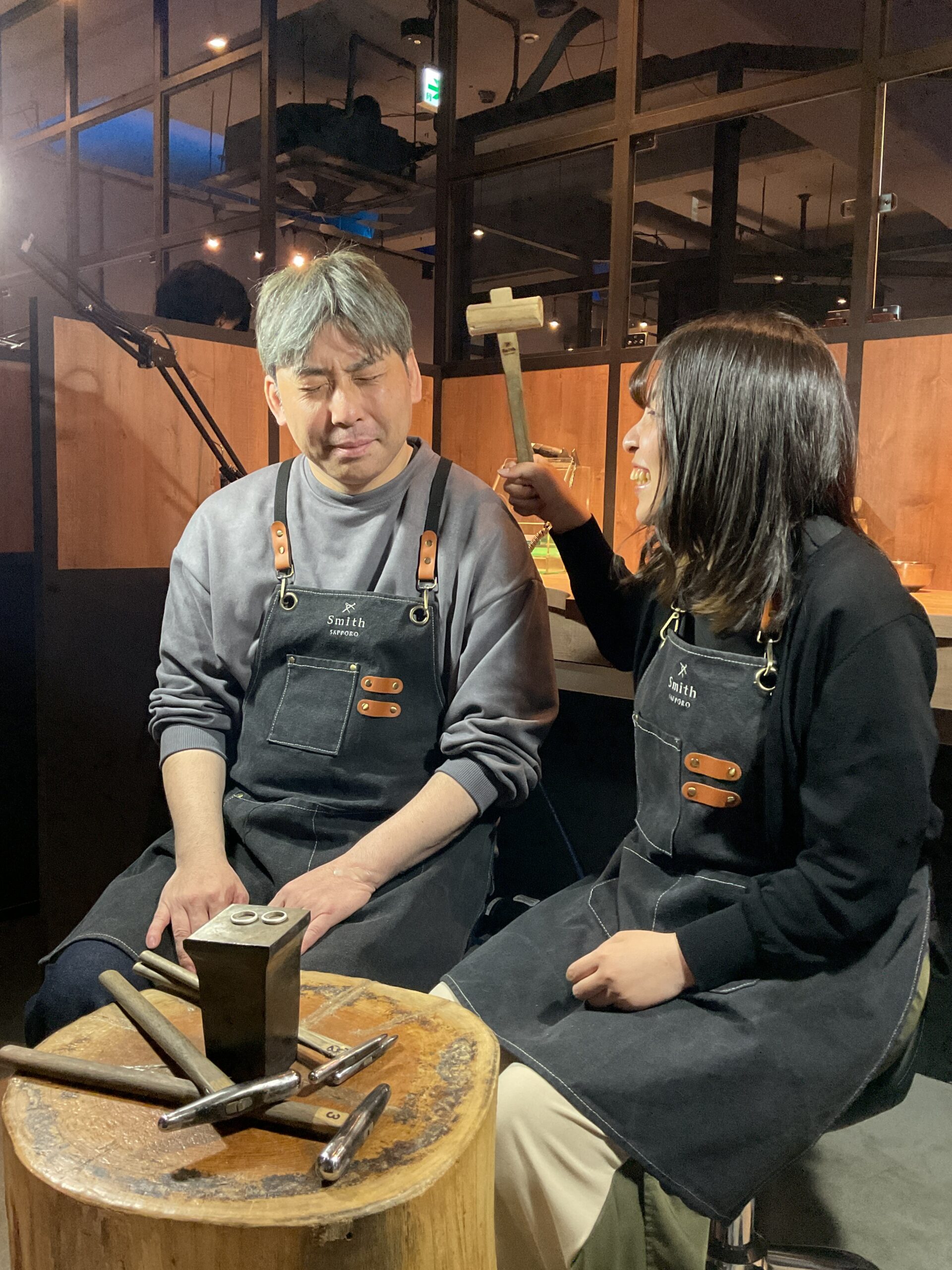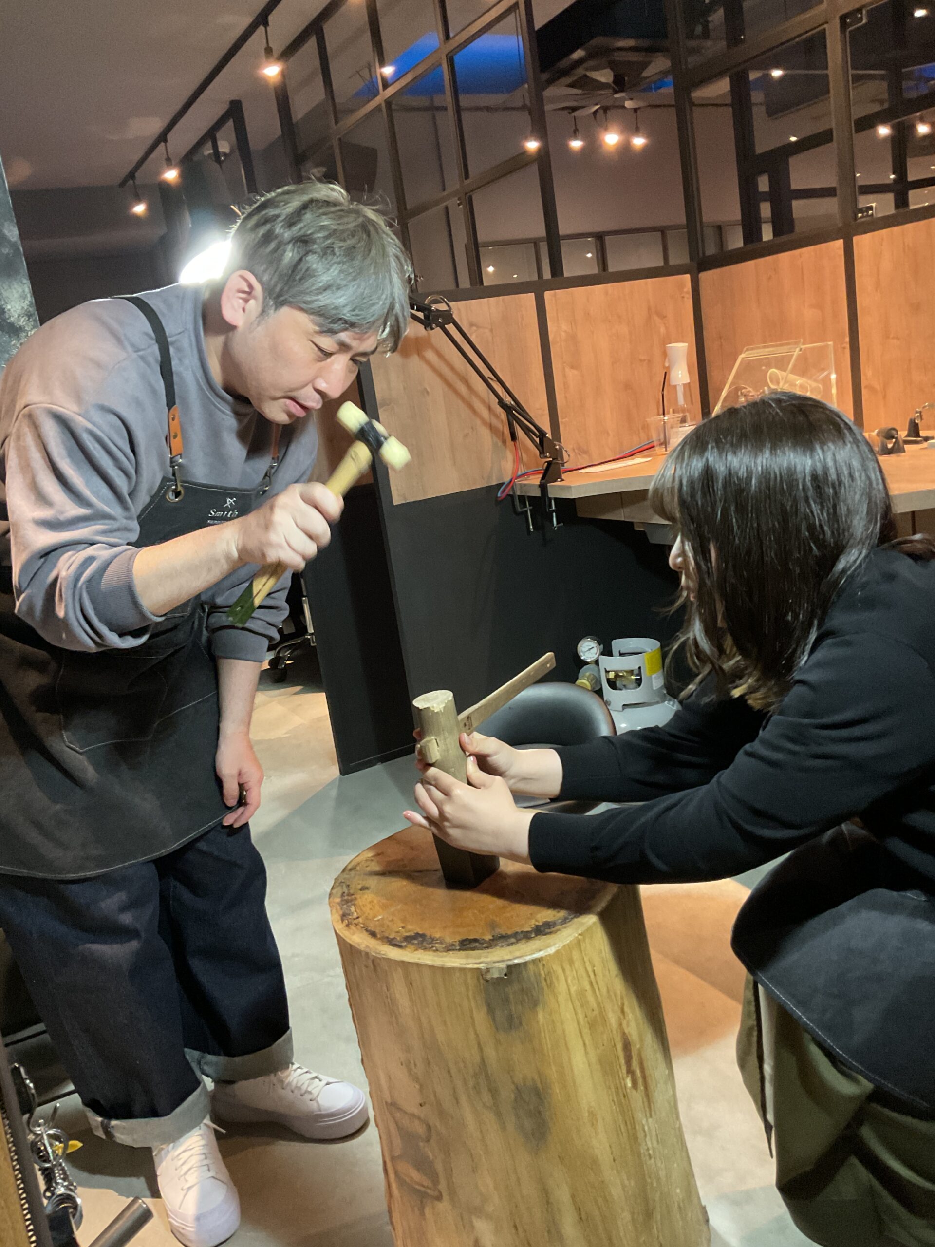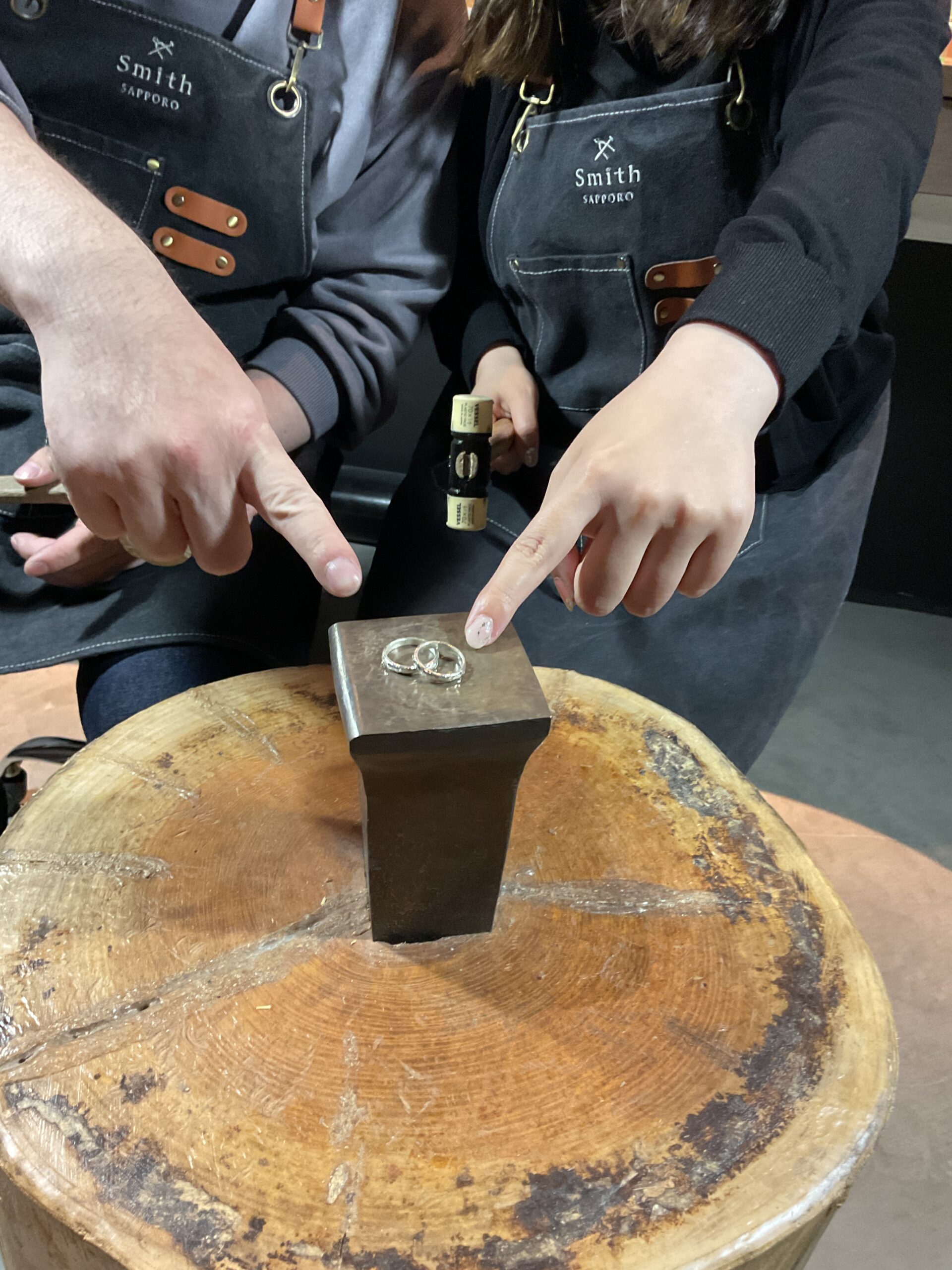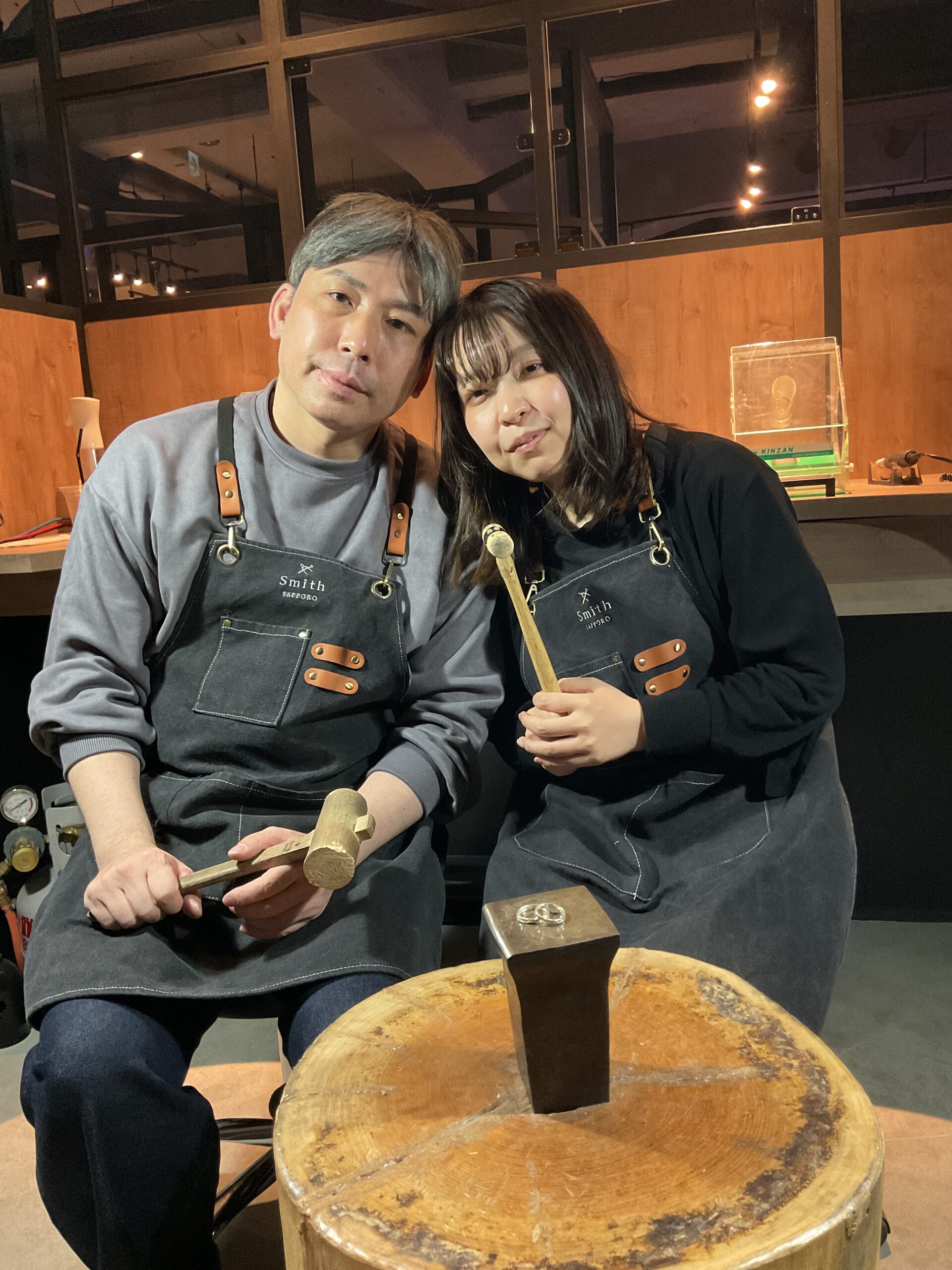 もの作りがお好きな彼氏様は、ハンマーや磨き加工を器用にこなしており、また、彼女様のお手伝いをされている姿にほっこりいたしました。