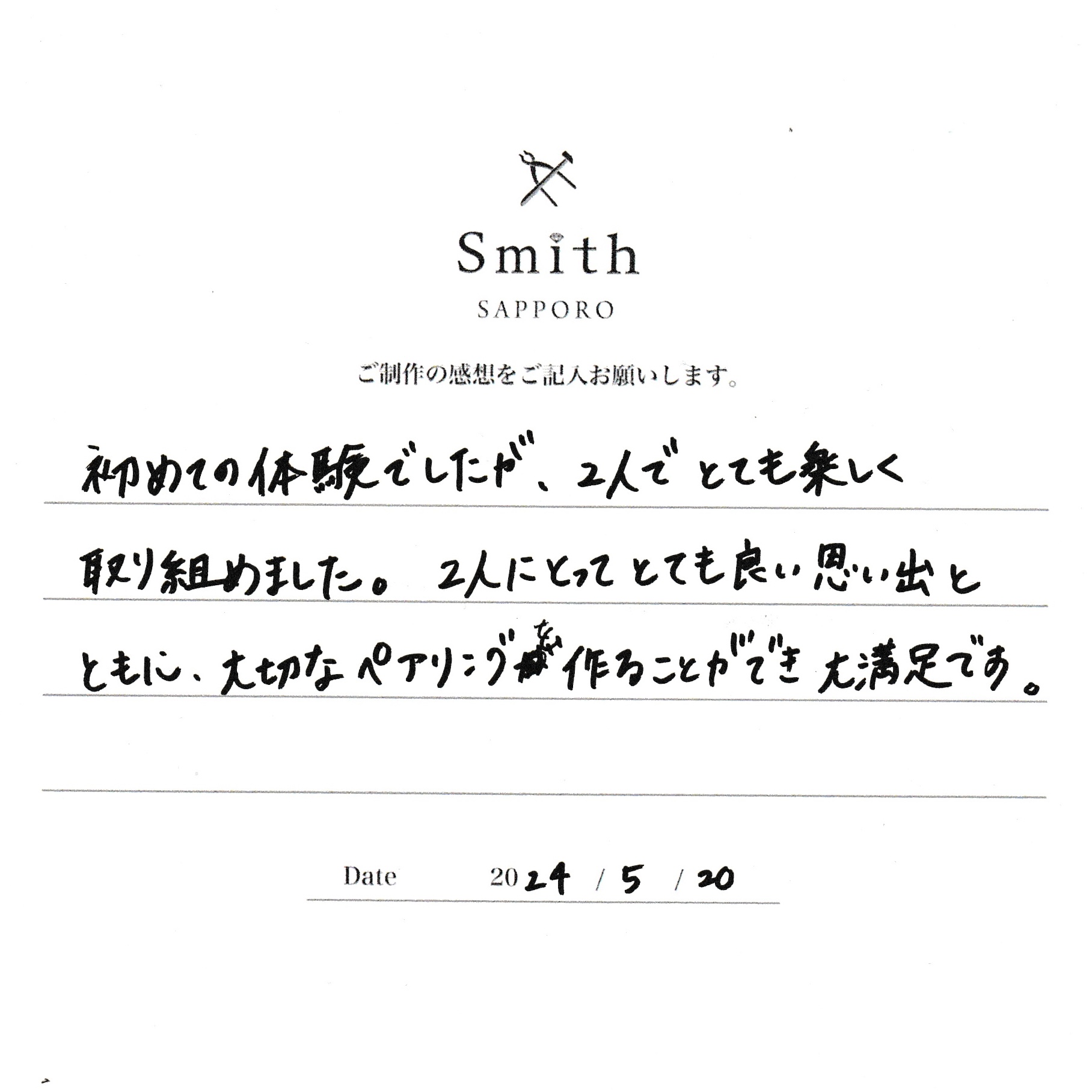 2人にとってとても良い思い出とともに大切なペアリングを作ることができ大満足です。