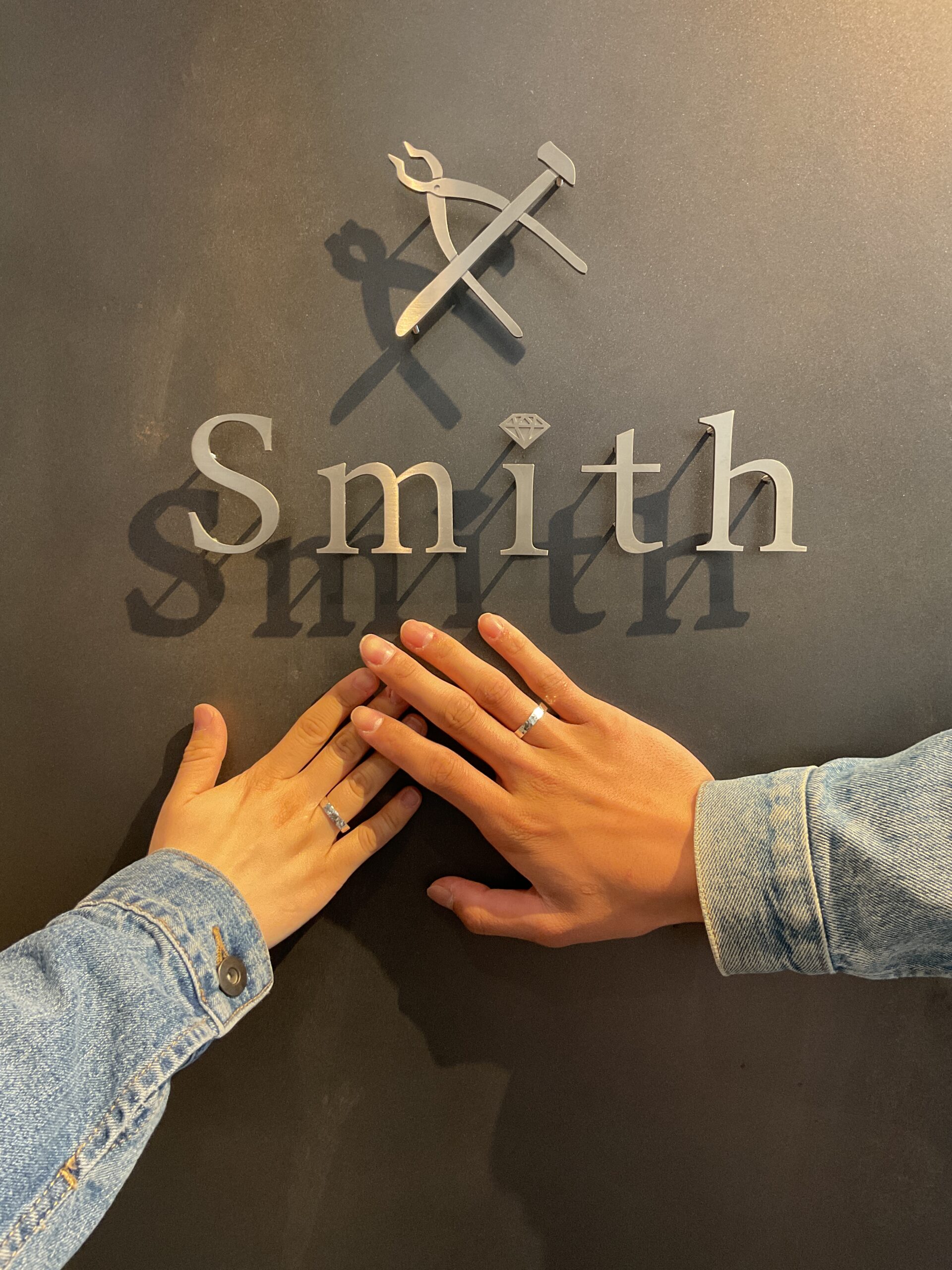 お二人が気に入って下さった鏡面ハンマーのテクスチャーを施したリングは、ハンマー模様が綺麗に入り、思いがこもった特別なペアリングになりました。