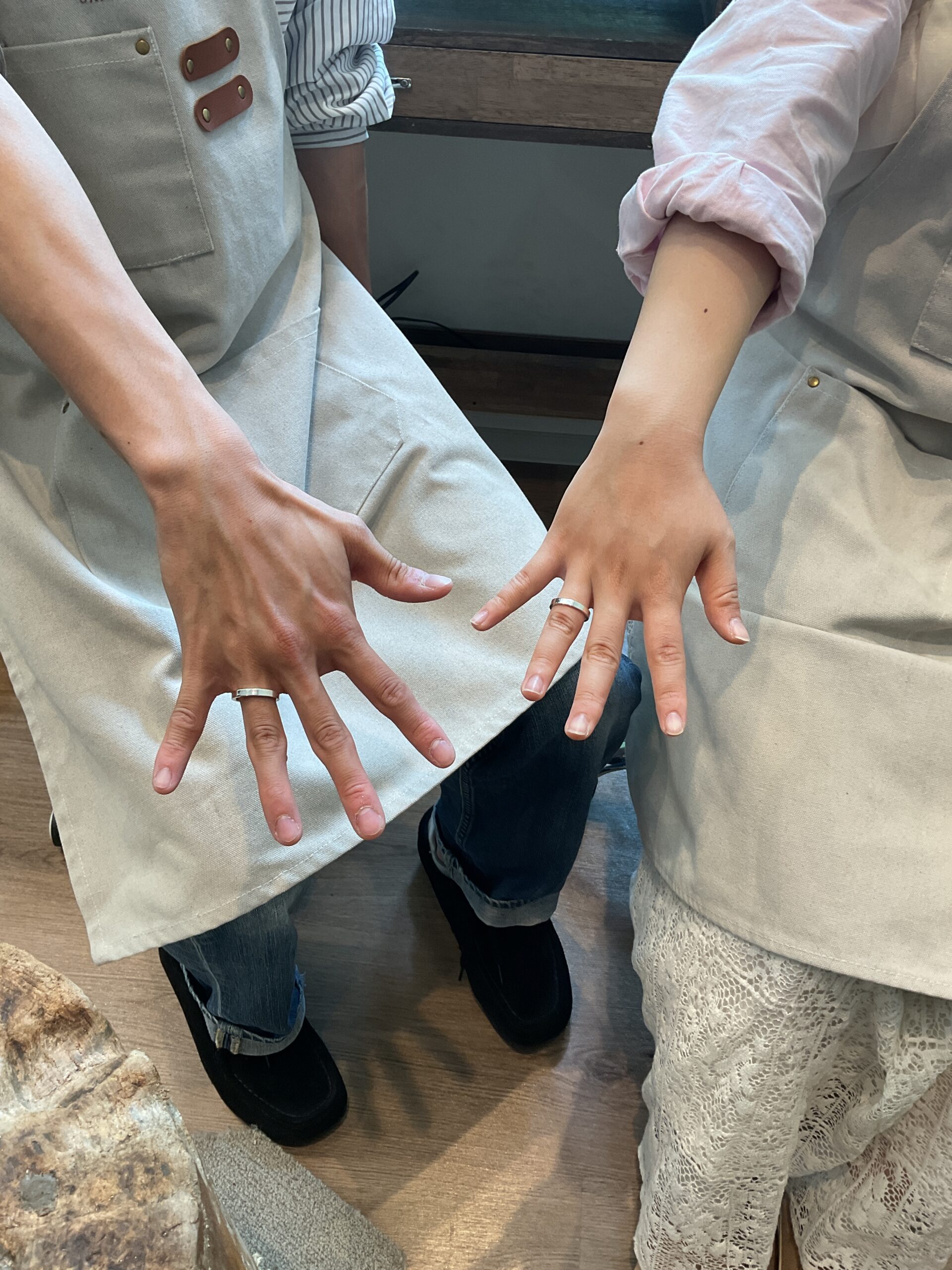 お二人が気に入って下さった鏡面加工を施したリングは、お二人の思いがこもった特別なペアリングになりました。