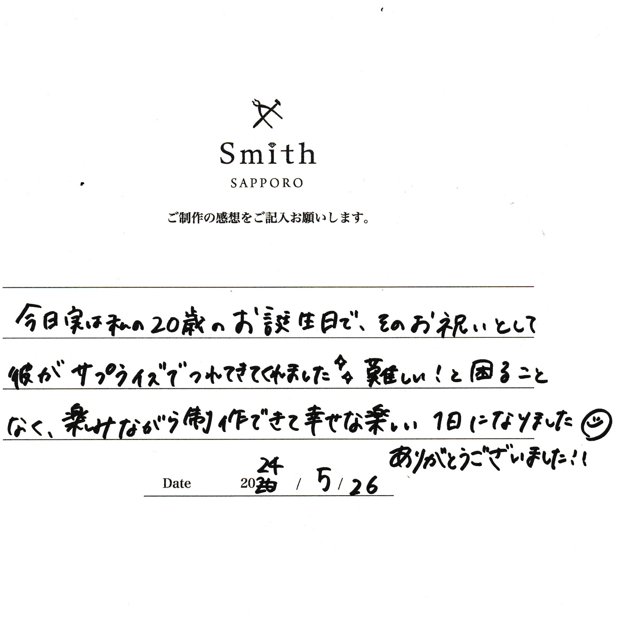 この度は、工房Smith京王プラザホテル札幌店で手作りペアリングのご制作誠にありがとうございました。