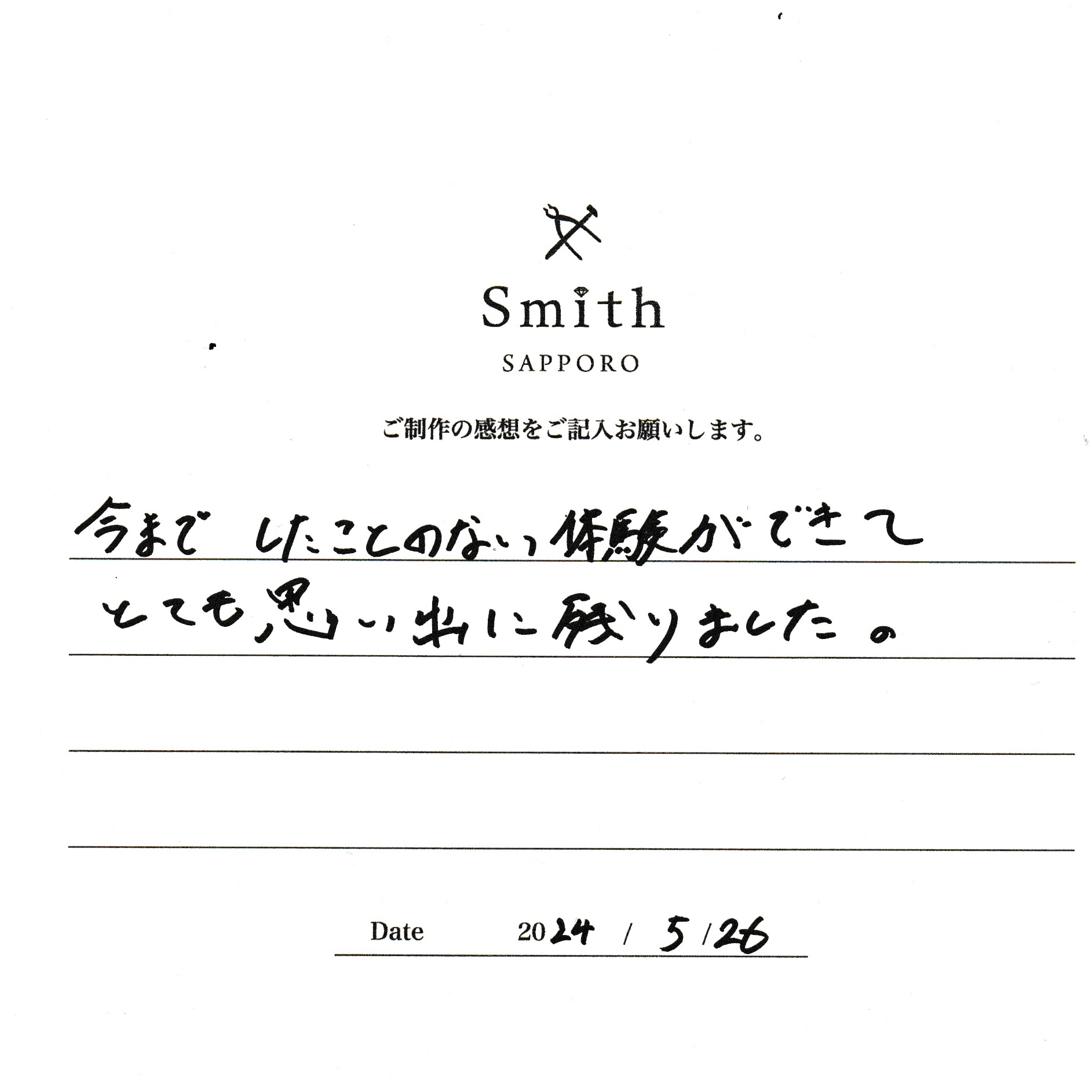 この度は、工房Smith京王プラザホテル札幌店で手作りペアリングのご制作誠にありがとうございました。