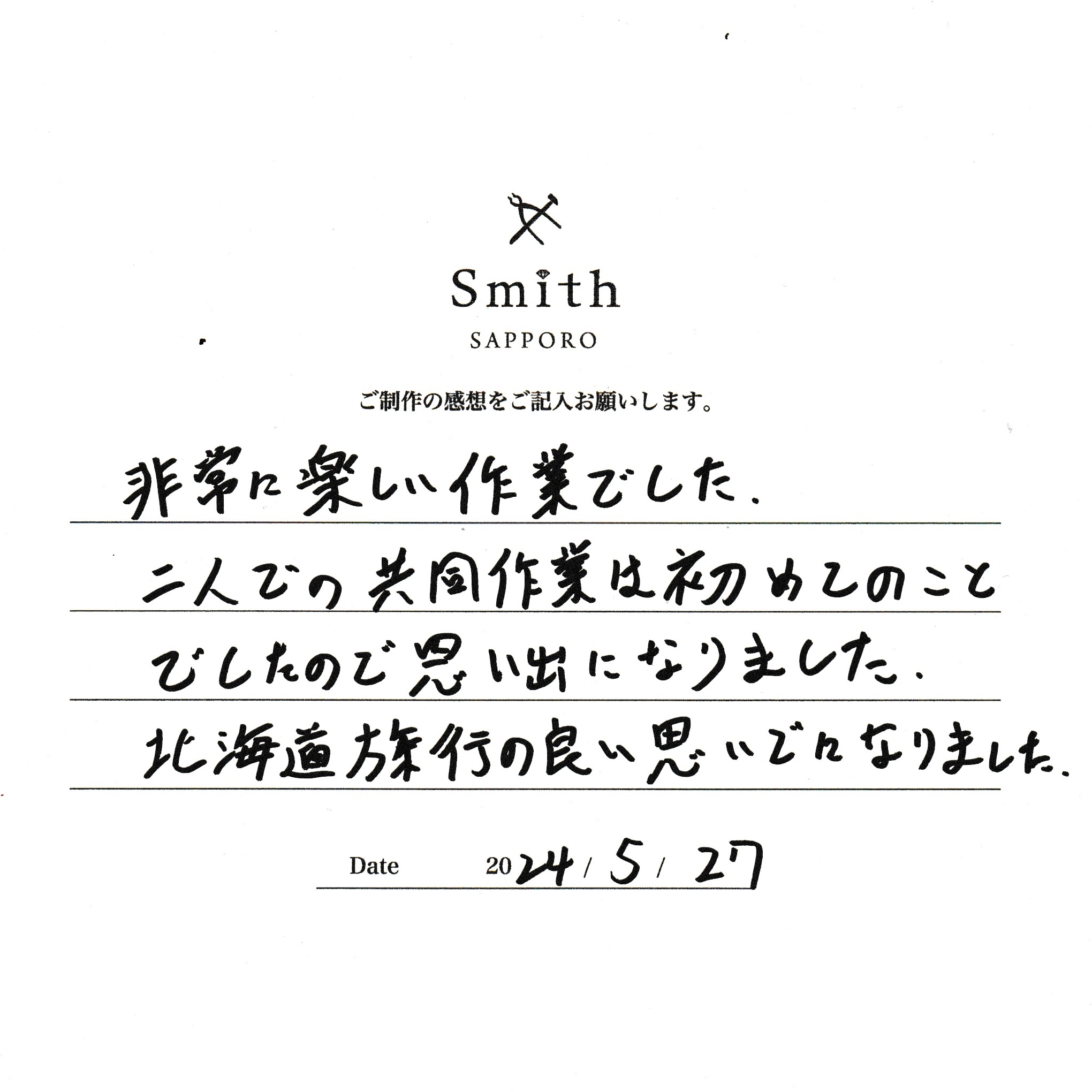 この度は、工房Smith京王プラザホテル札幌店で手作りペアリングのご制作 誠にありがとうございました。