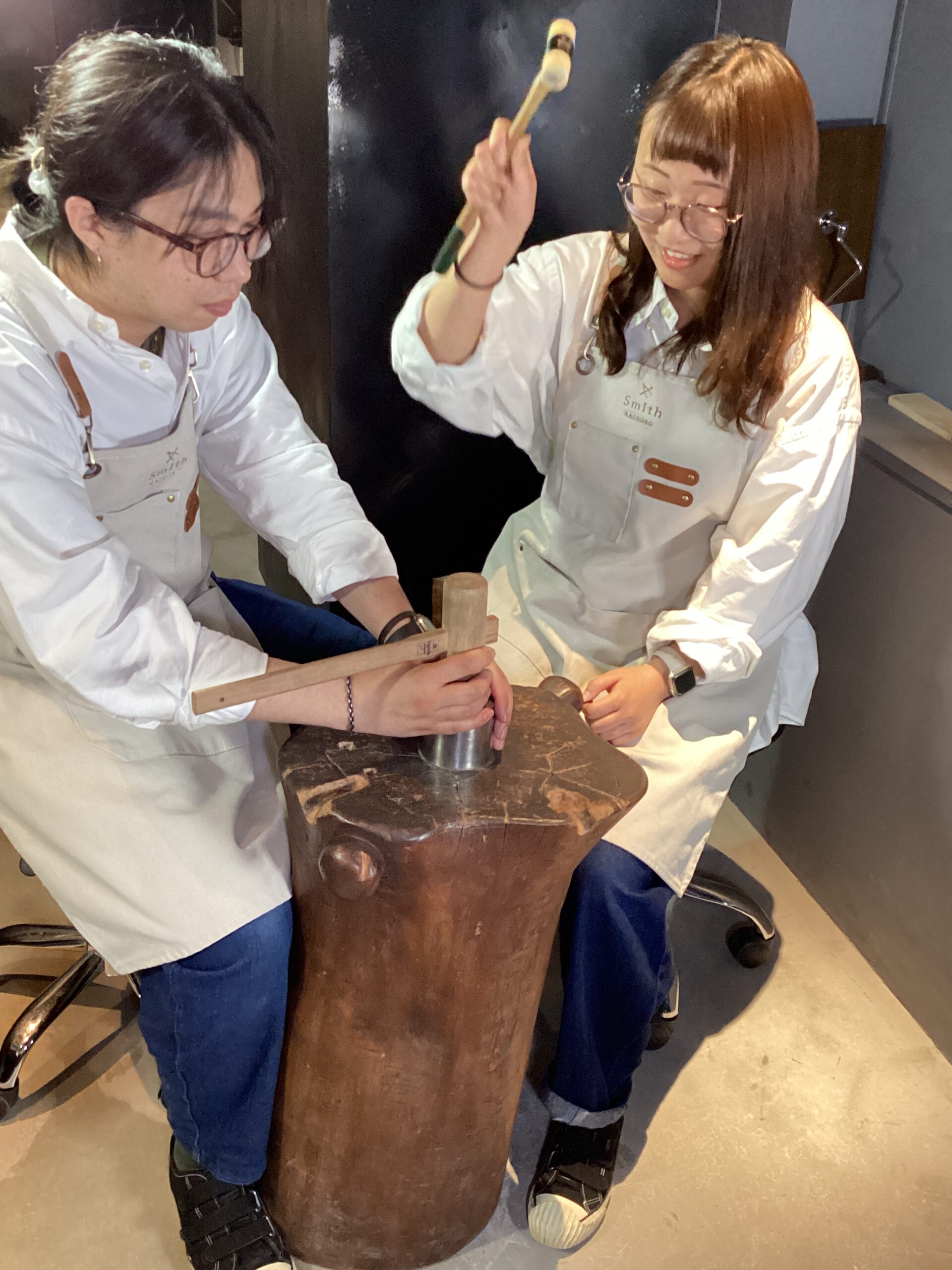ハンマー模様も1つ1つデザインしながら、職人のような眼差しで真剣に作業されておりましたね。