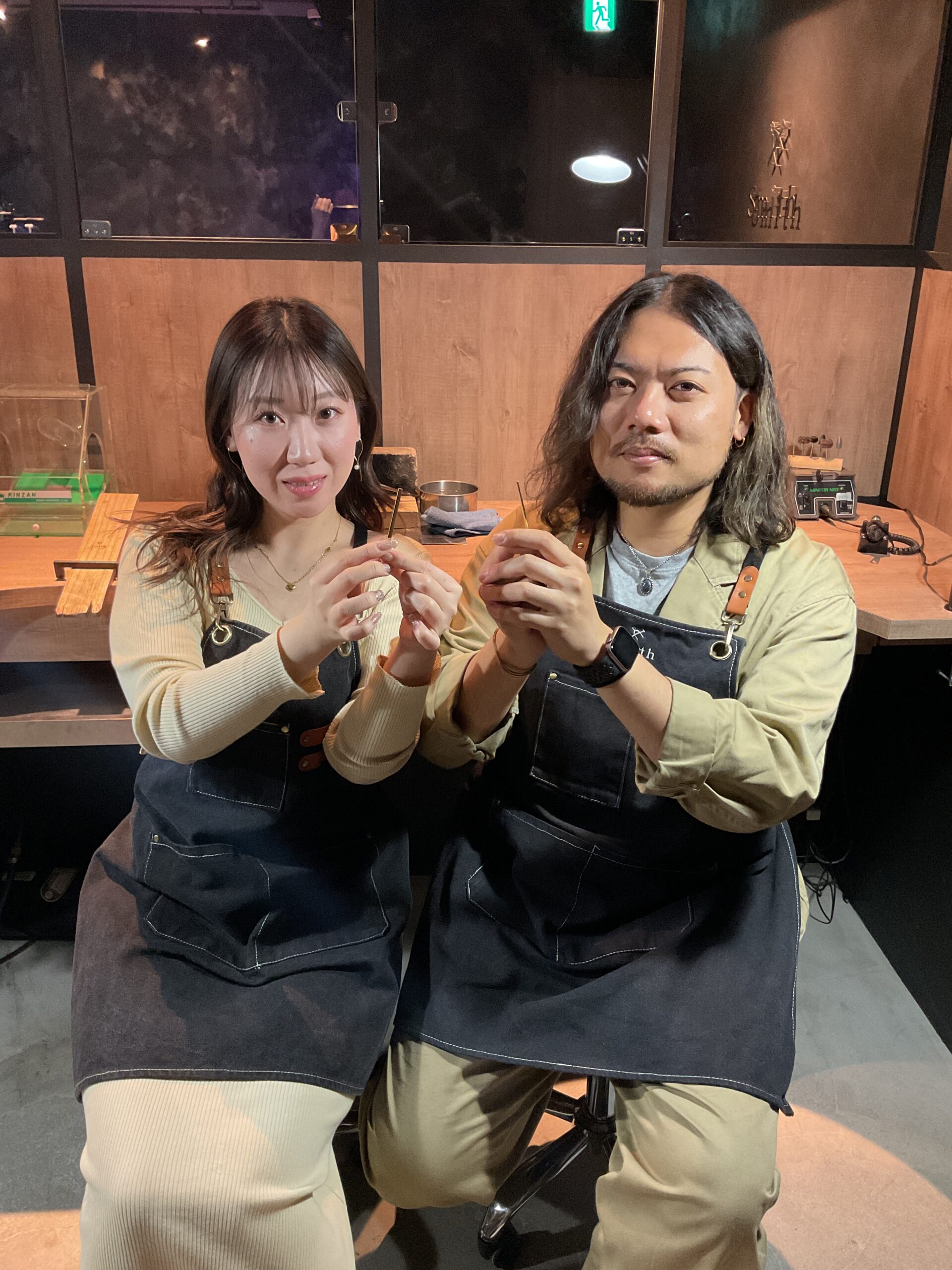 想いを込めてお互いの指輪を作り合った今日の思い出が、お二人の心に残ると幸いでございます。