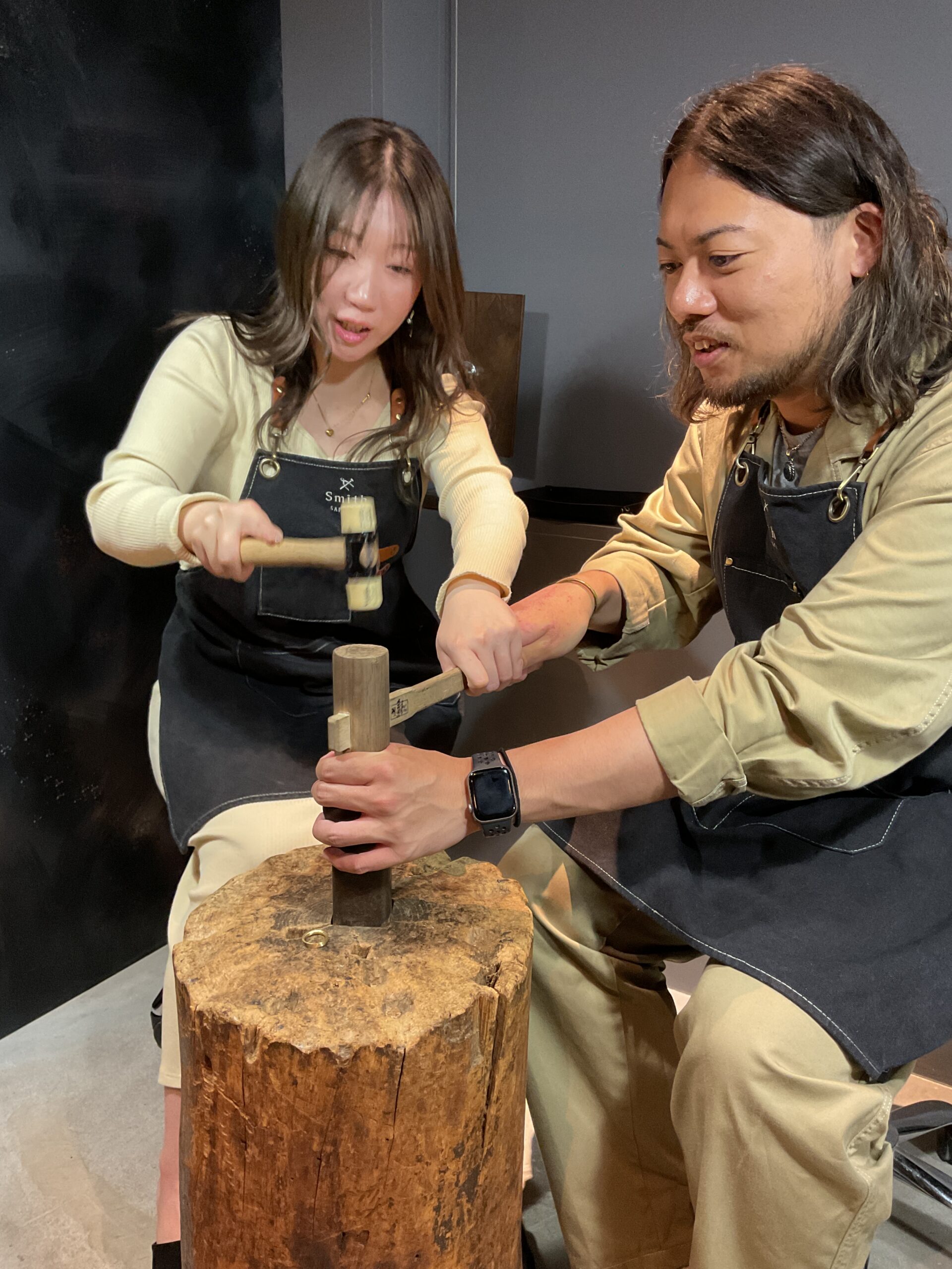 ご主人はハンマーで叩くところ、奥様は磨く作業がそれぞれお得意で、お互いを補い合える素敵な関係性が垣間見えました。