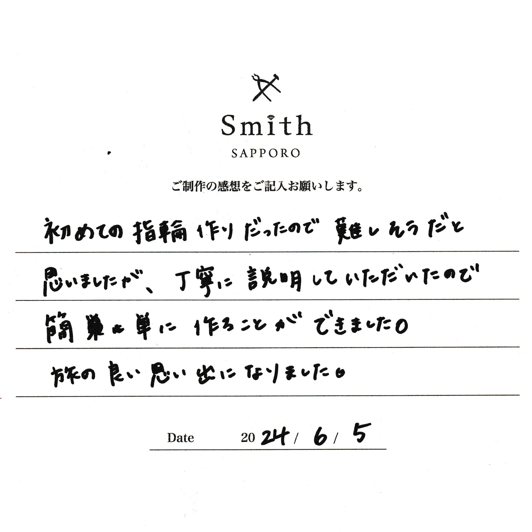この度は、工房Smith京王プラザホテル札幌店で手作りペアリングのご制作 誠にありがとうございました。