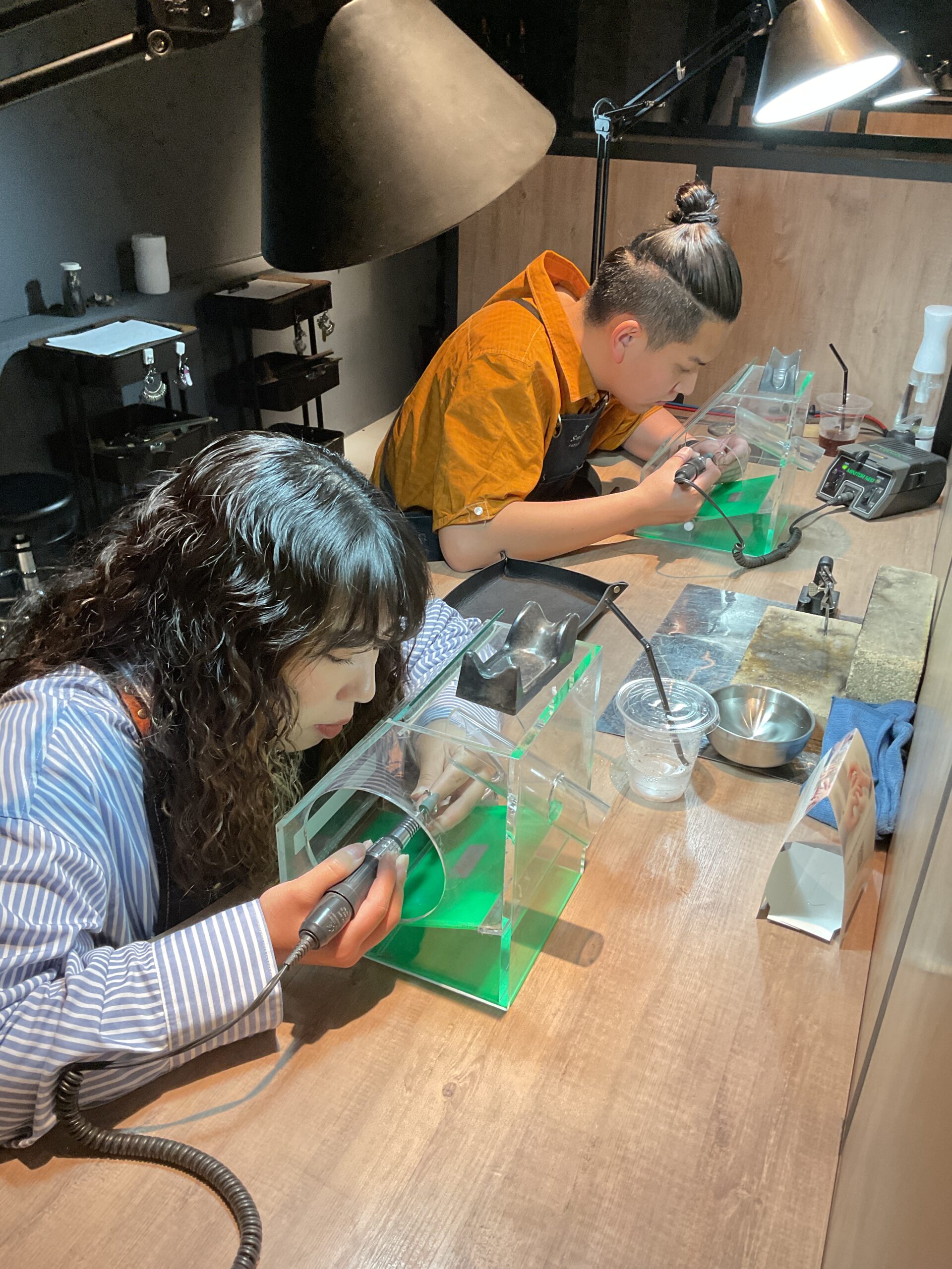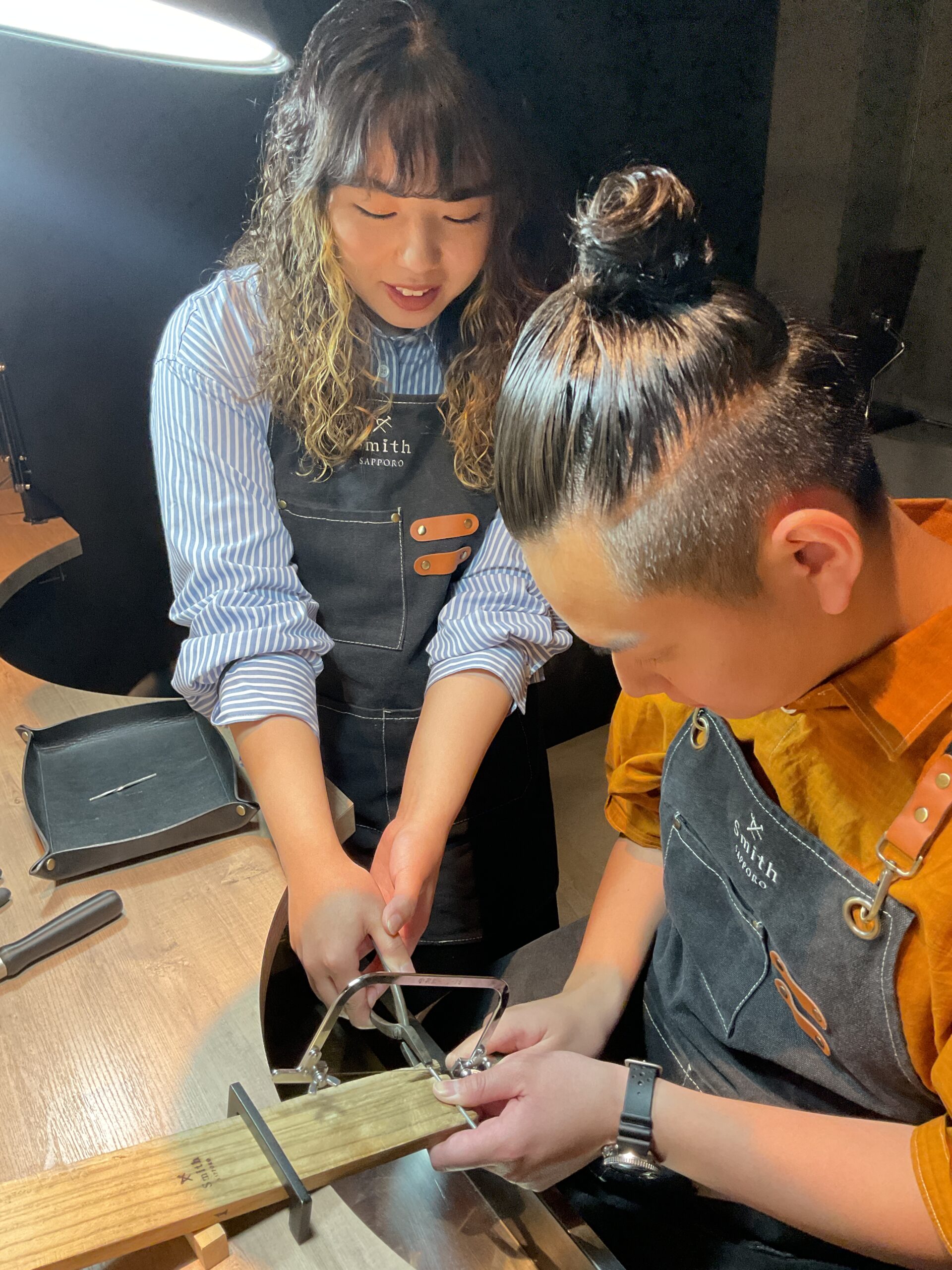 お互い協力し合いながらご自身の結婚指輪を仕上げている姿が印象的でした。