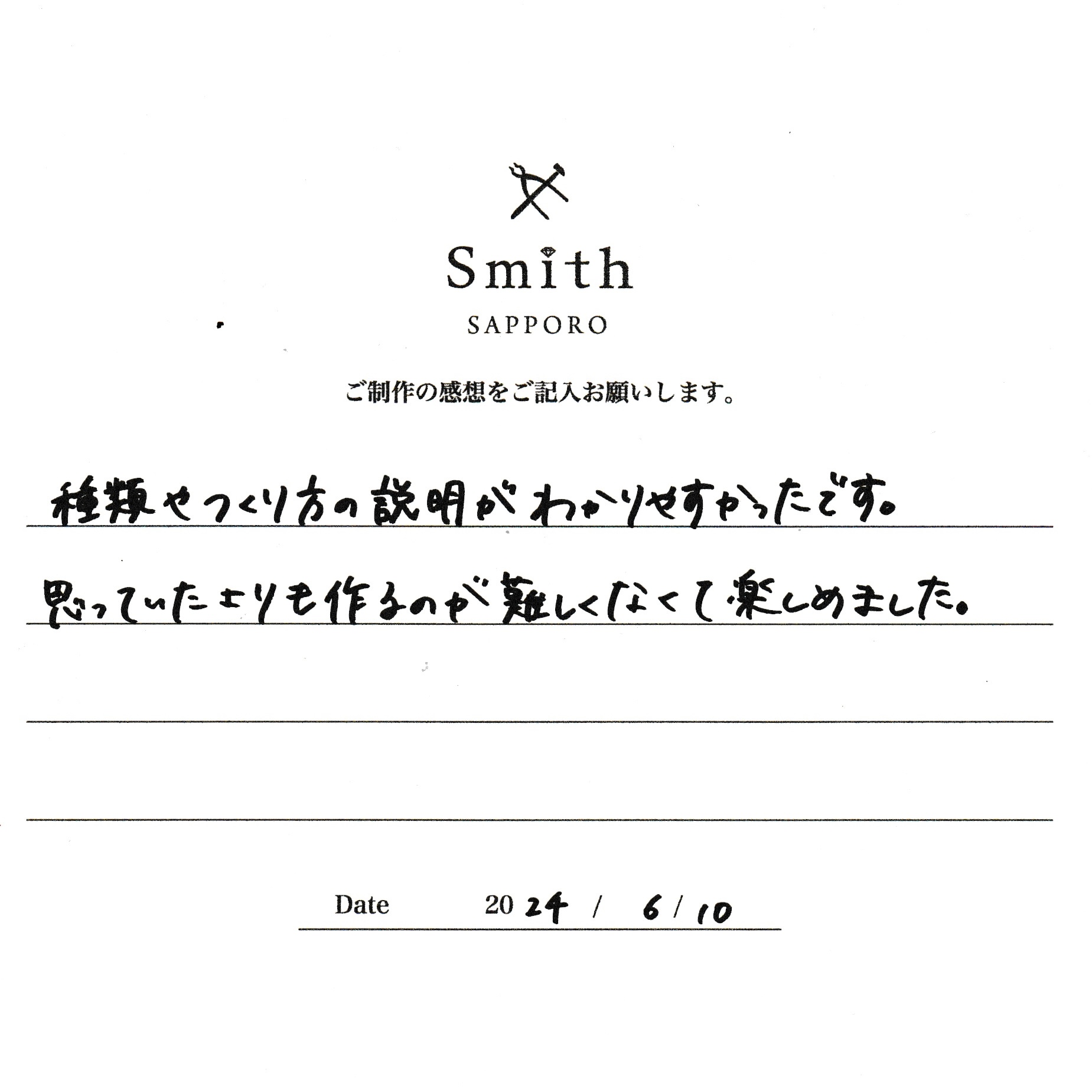 この度は、工房Smith京王プラザホテル札幌店で手作りペアリングのご制作誠にありがとうございました。