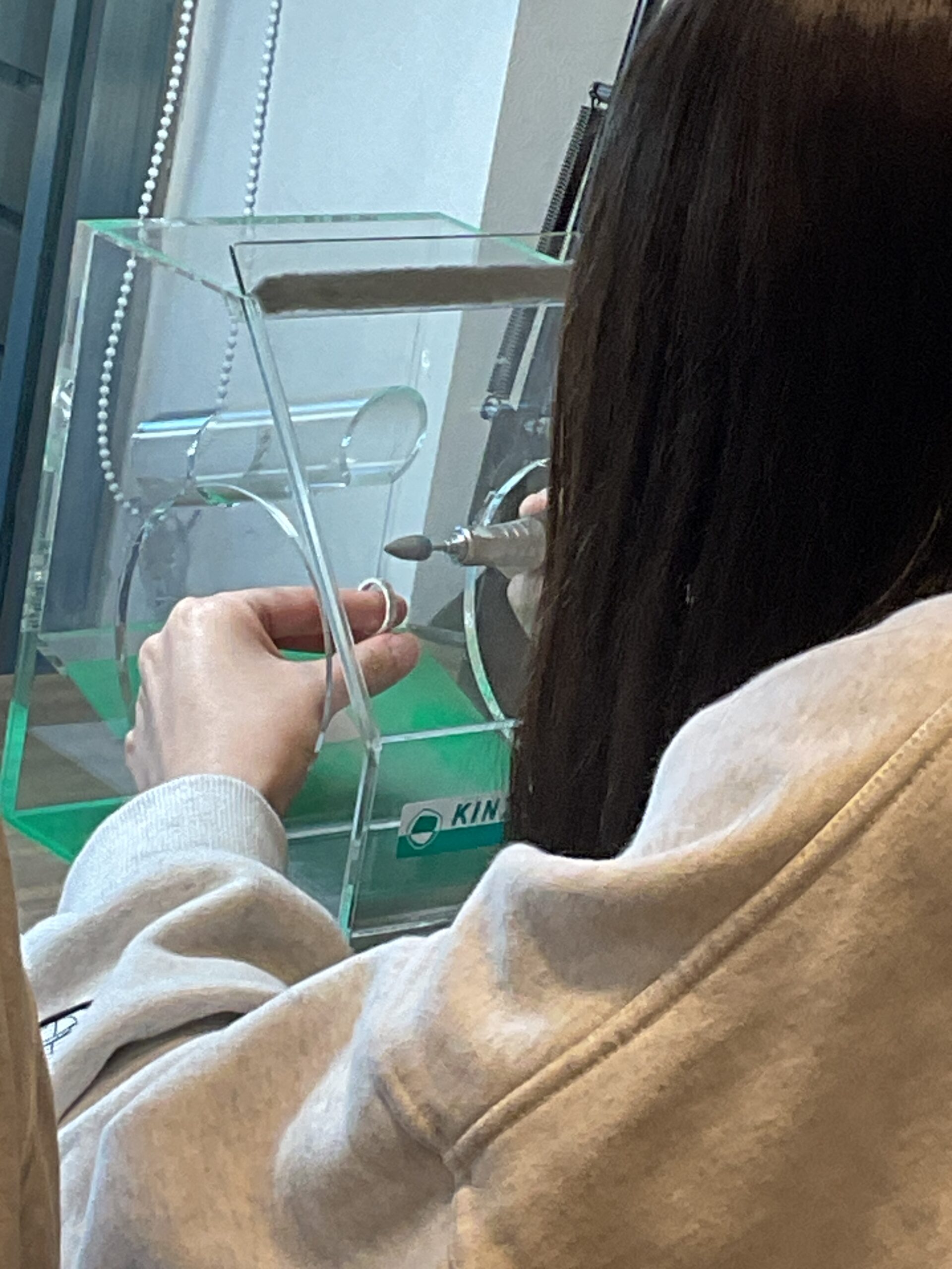 スタイリッシュな印象になる平打ちのリングをお選びいただき、ピカピカに磨いていただきました。