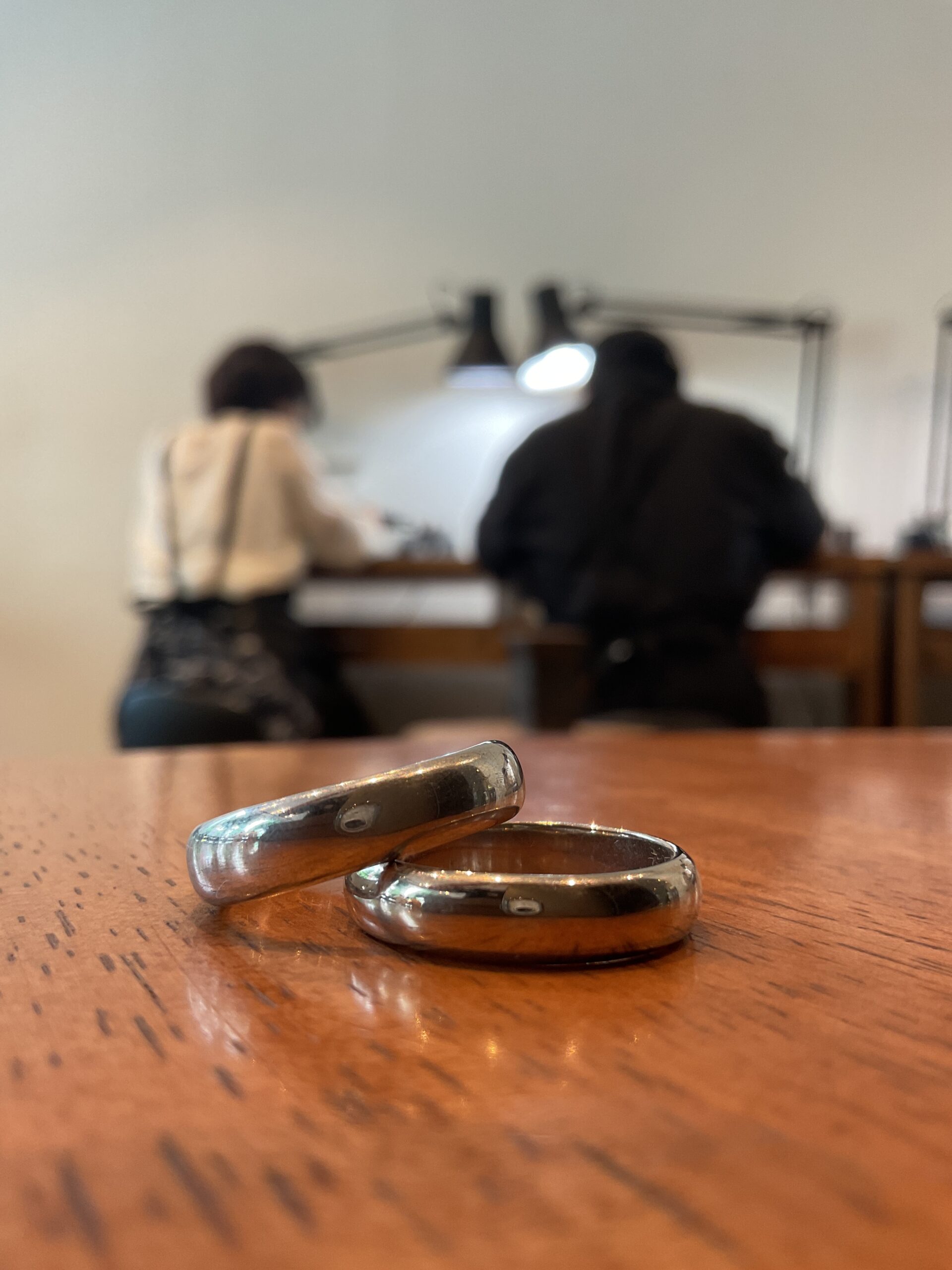 リングの内側には、お二人のイニシャルの刻印が入りシルバーの変色を防ぐコーティングが施されました。