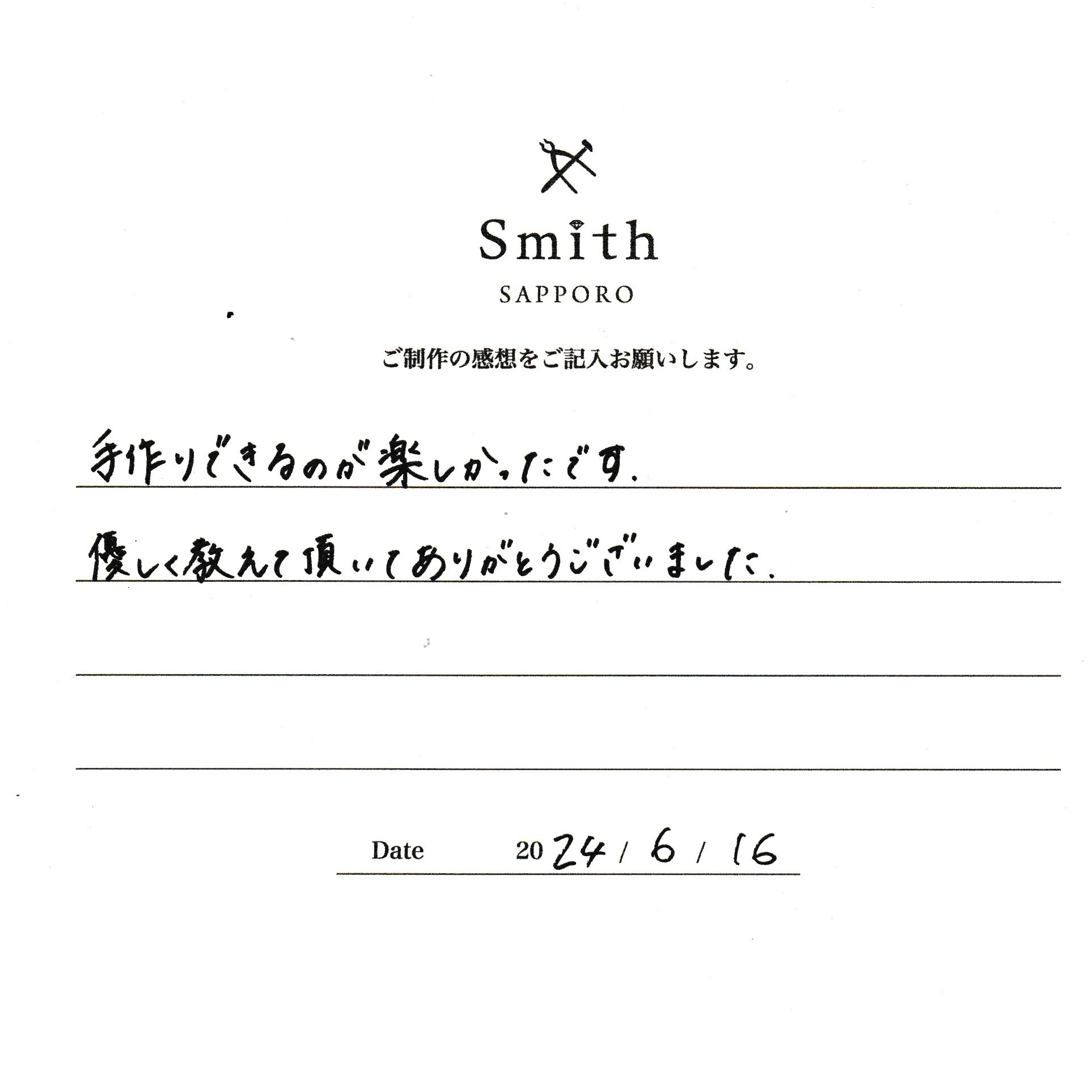 この度は、工房Smith京王プラザホテル札幌店で 手作りペアリングのご制作 誠にありがとうございました。