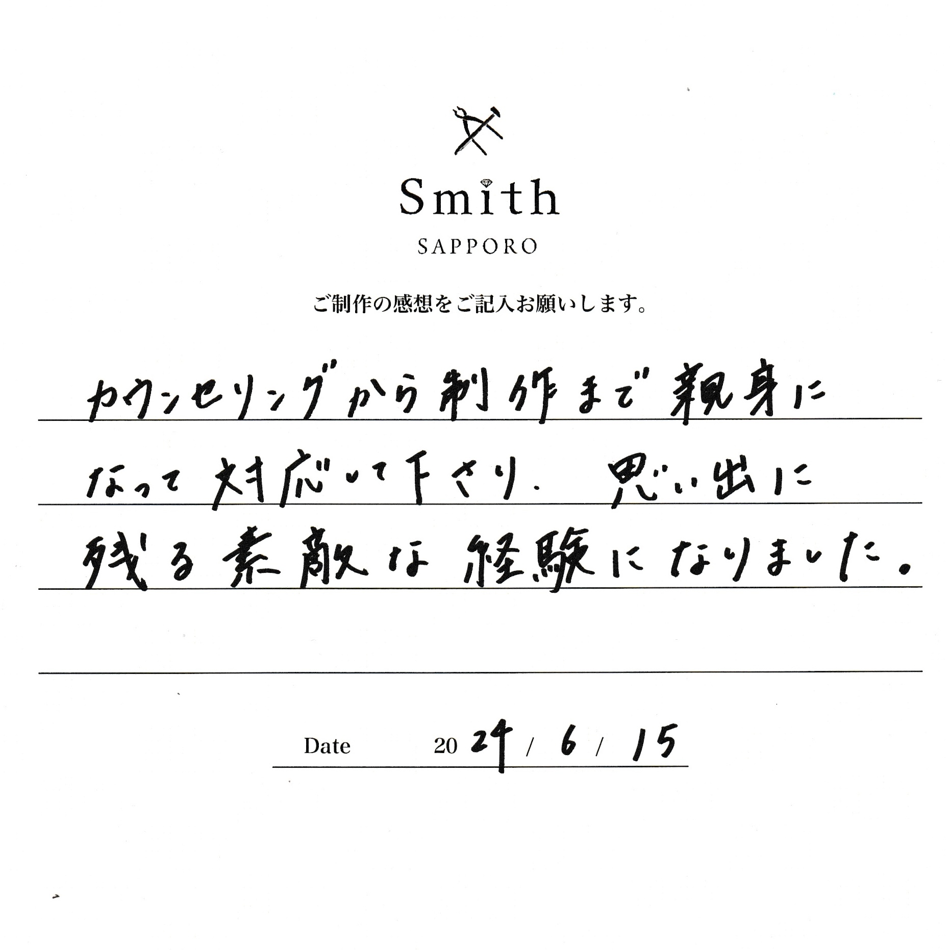 この度は手作り結婚指輪のご制作に工房Smith札幌店をお選び頂きまして、誠にありがとうございます。